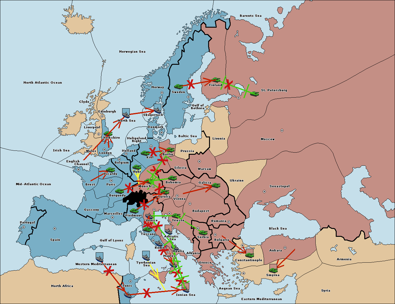 The fleet at Tyrrhenian Sea support move to Ionian Sea from Tunis.