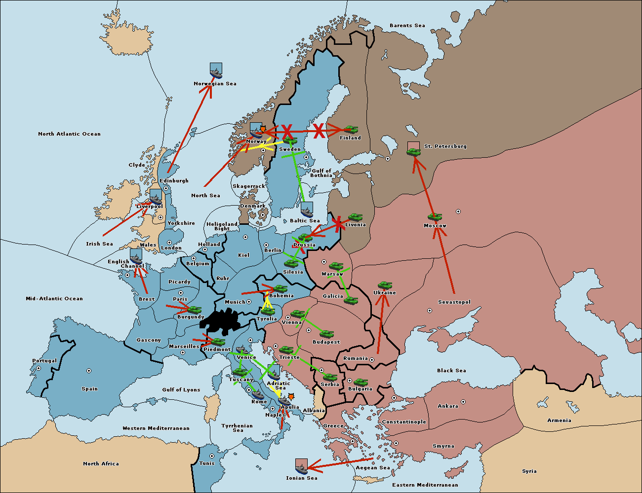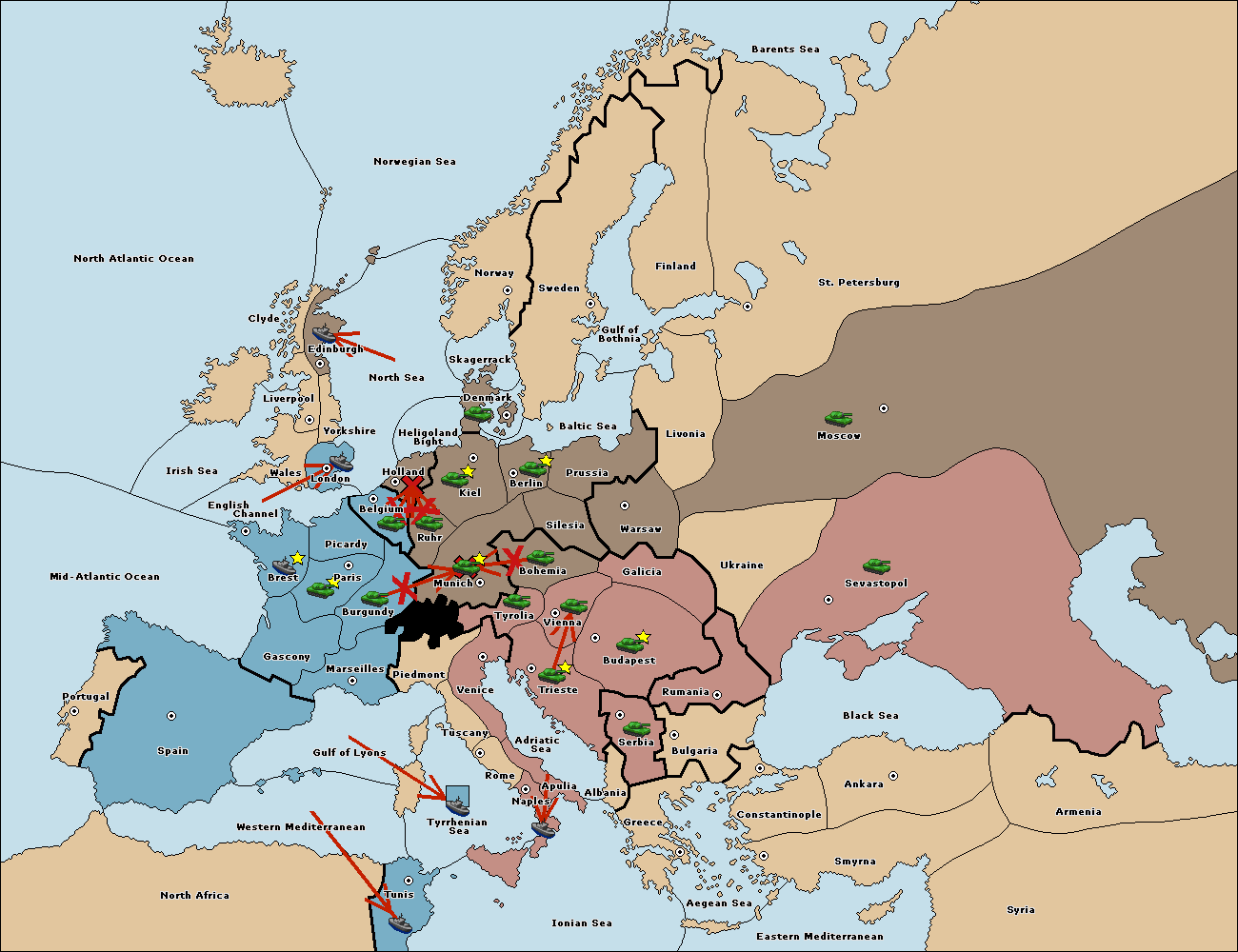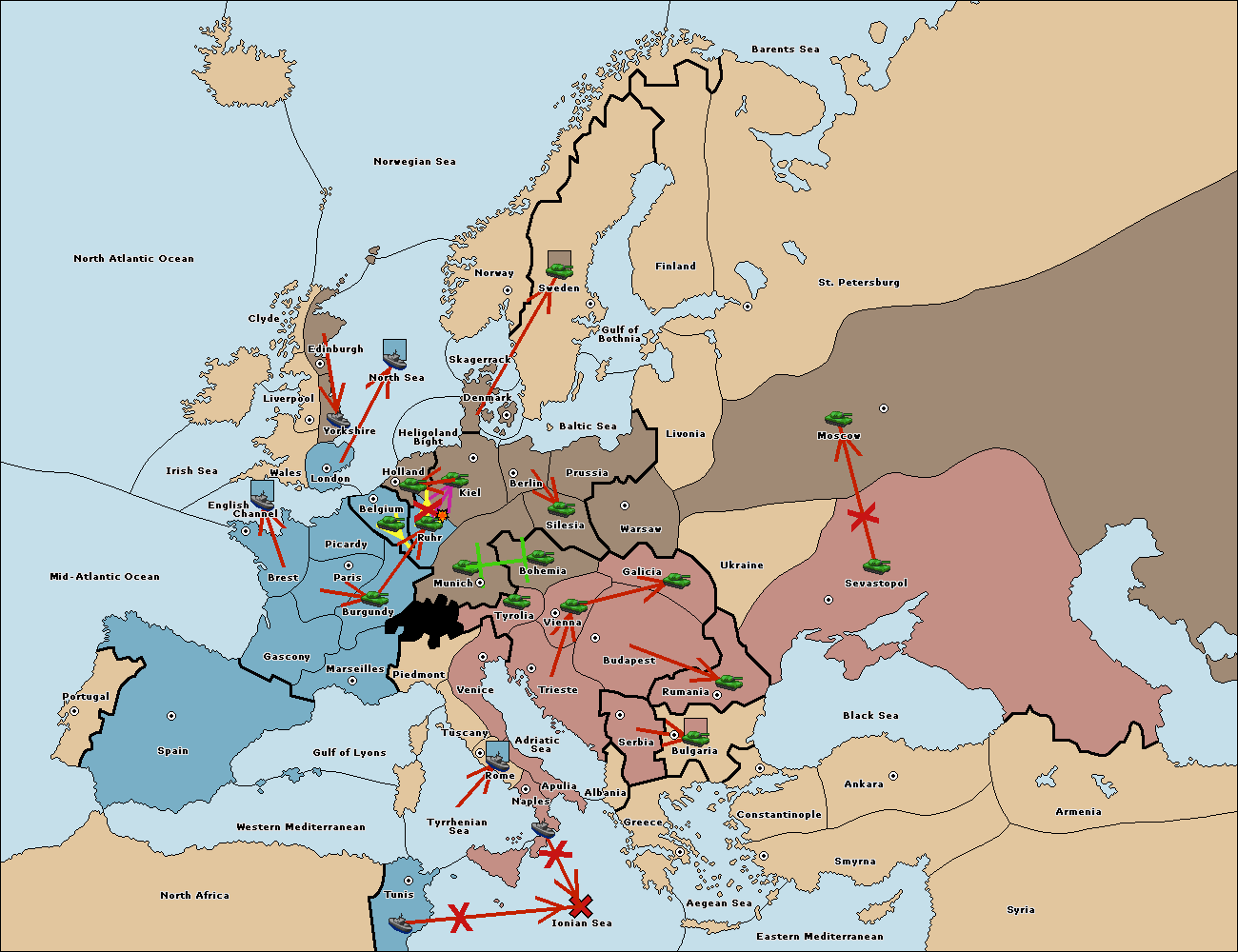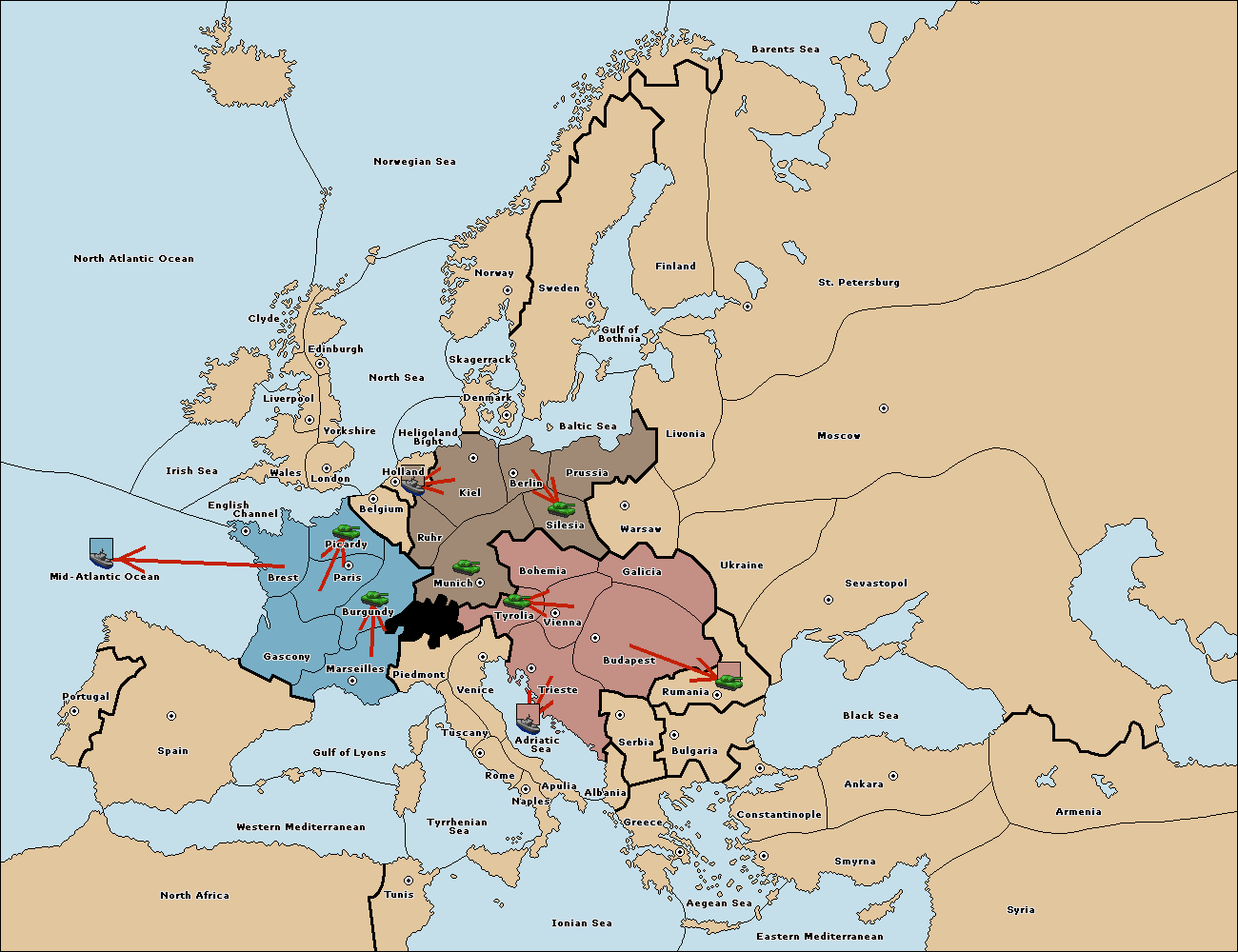 The fleet at Adriatic Sea support move to Trieste from Tyrolia.