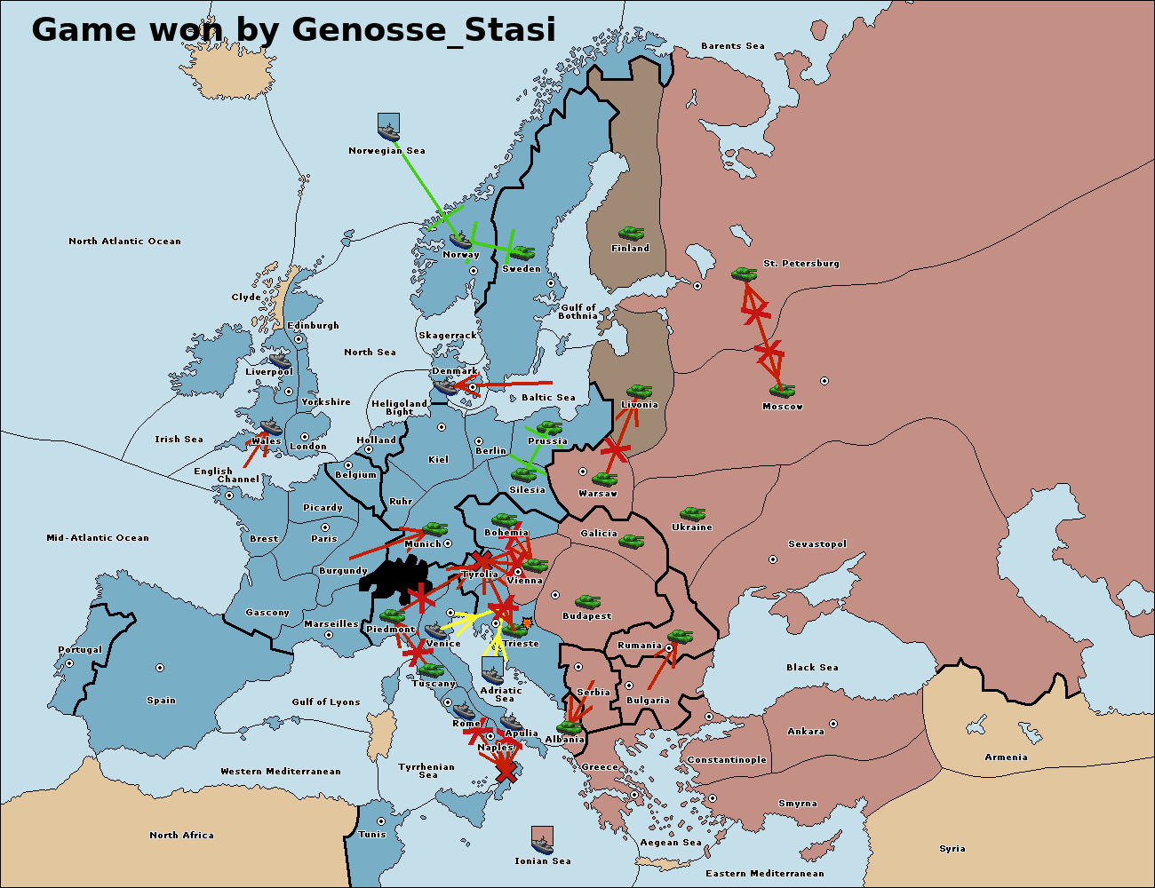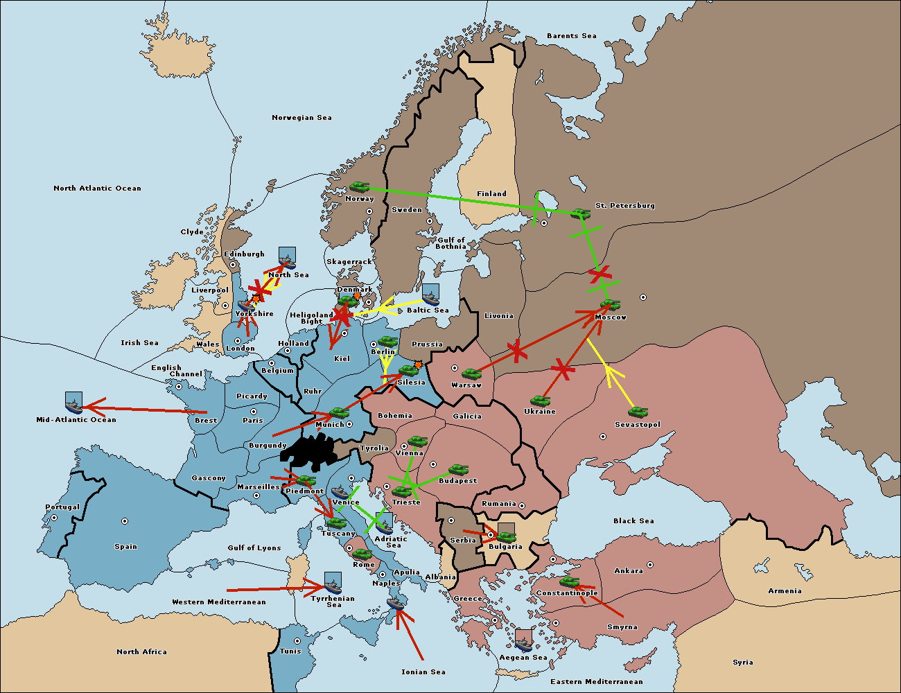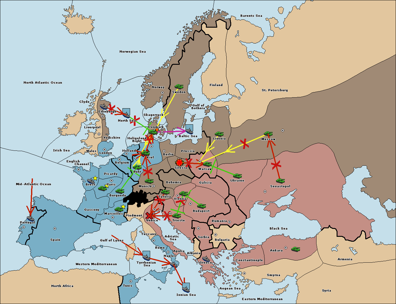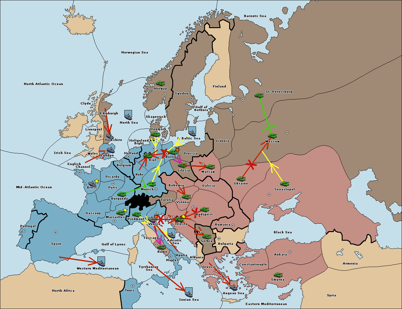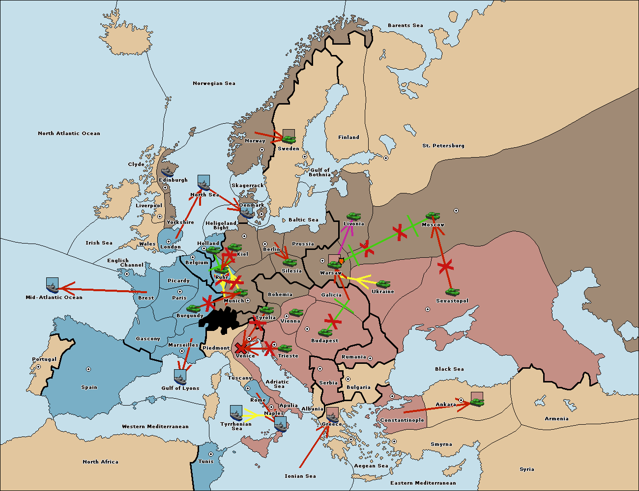 The fleet at Adriatic Sea support move to Trieste from Tyrolia.