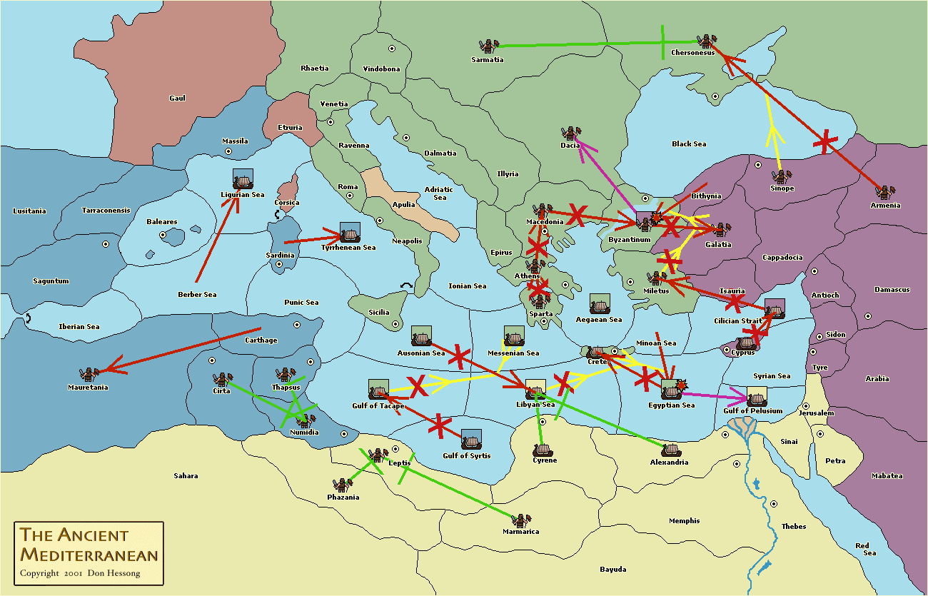 The fleet at Egyptian Sea move to Minoan Sea.