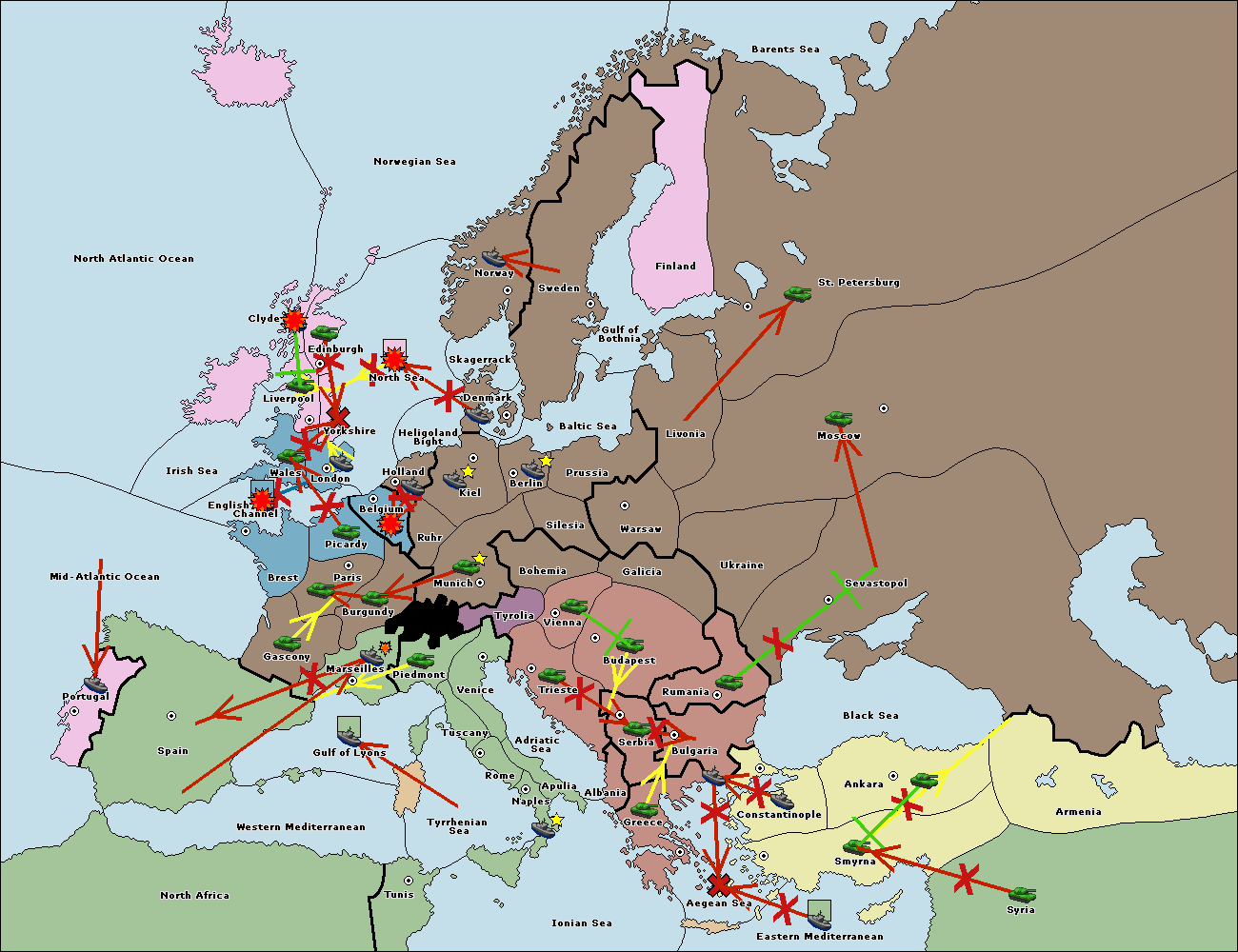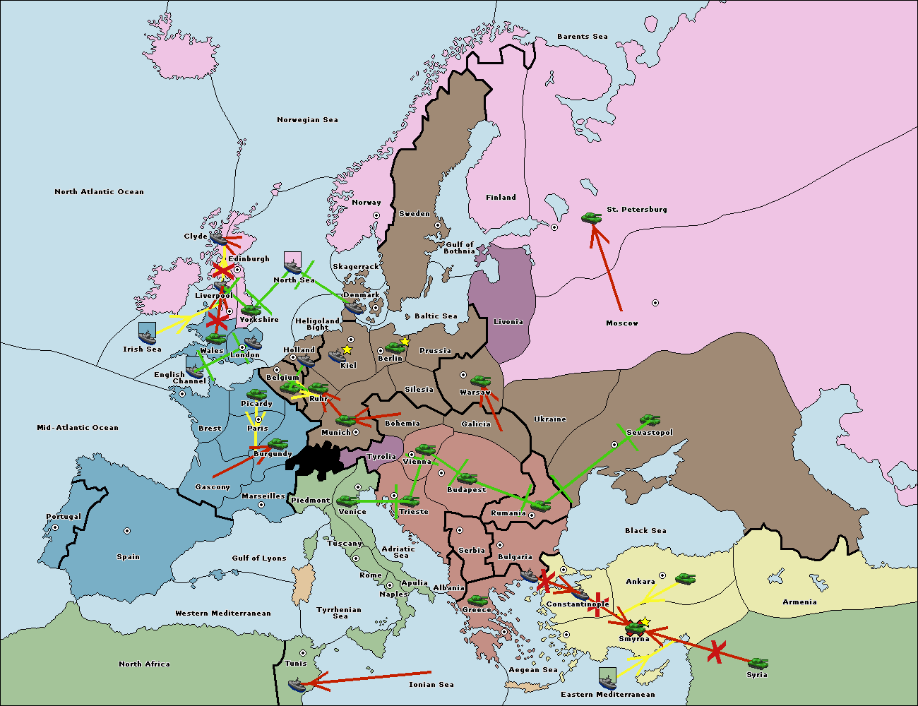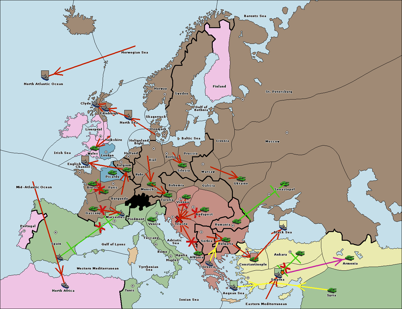 The fleet at Constantinople support move to Bulgaria from Ankara.