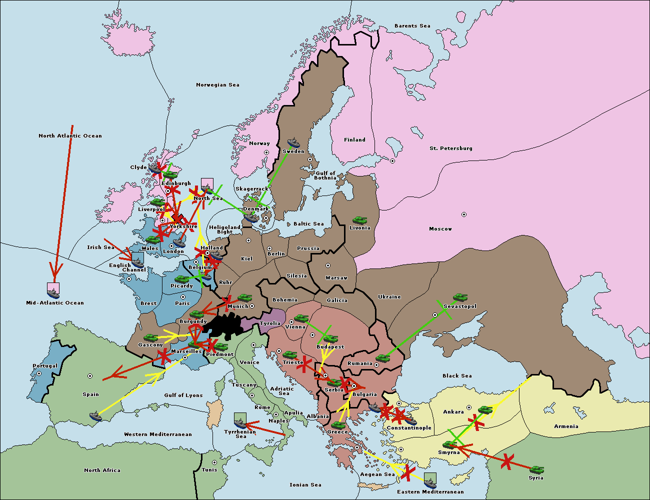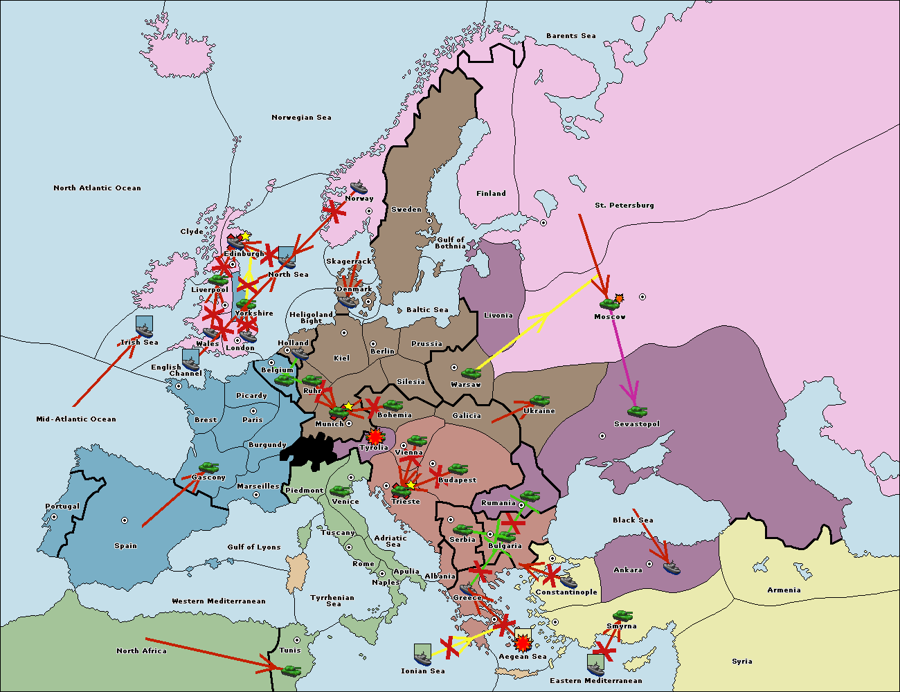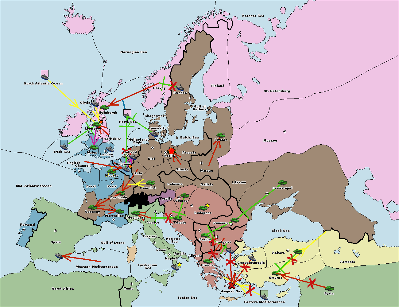 The fleet at Constantinople support move to Bulgaria from Ankara.