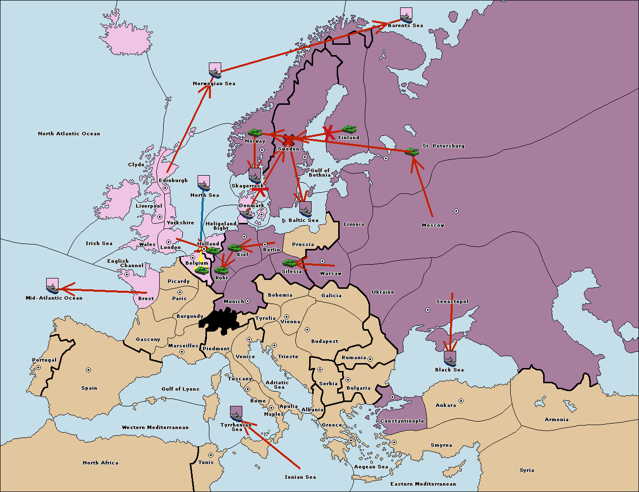 The fleet at Barents Sea move to St. Petersburg (North Coast).
