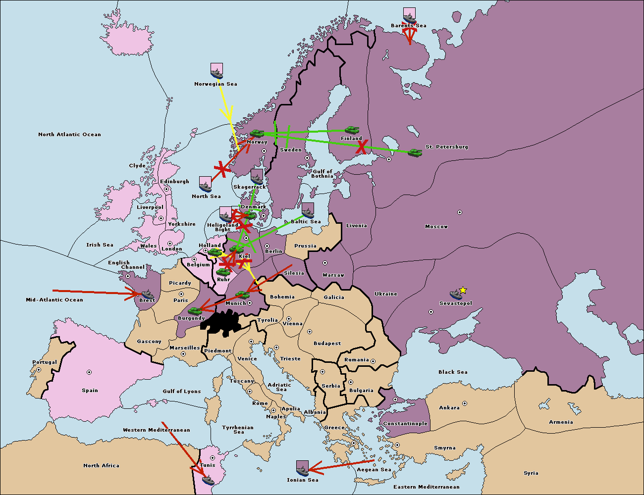 The fleet at St. Petersburg (North Coast) move to Barents Sea.
