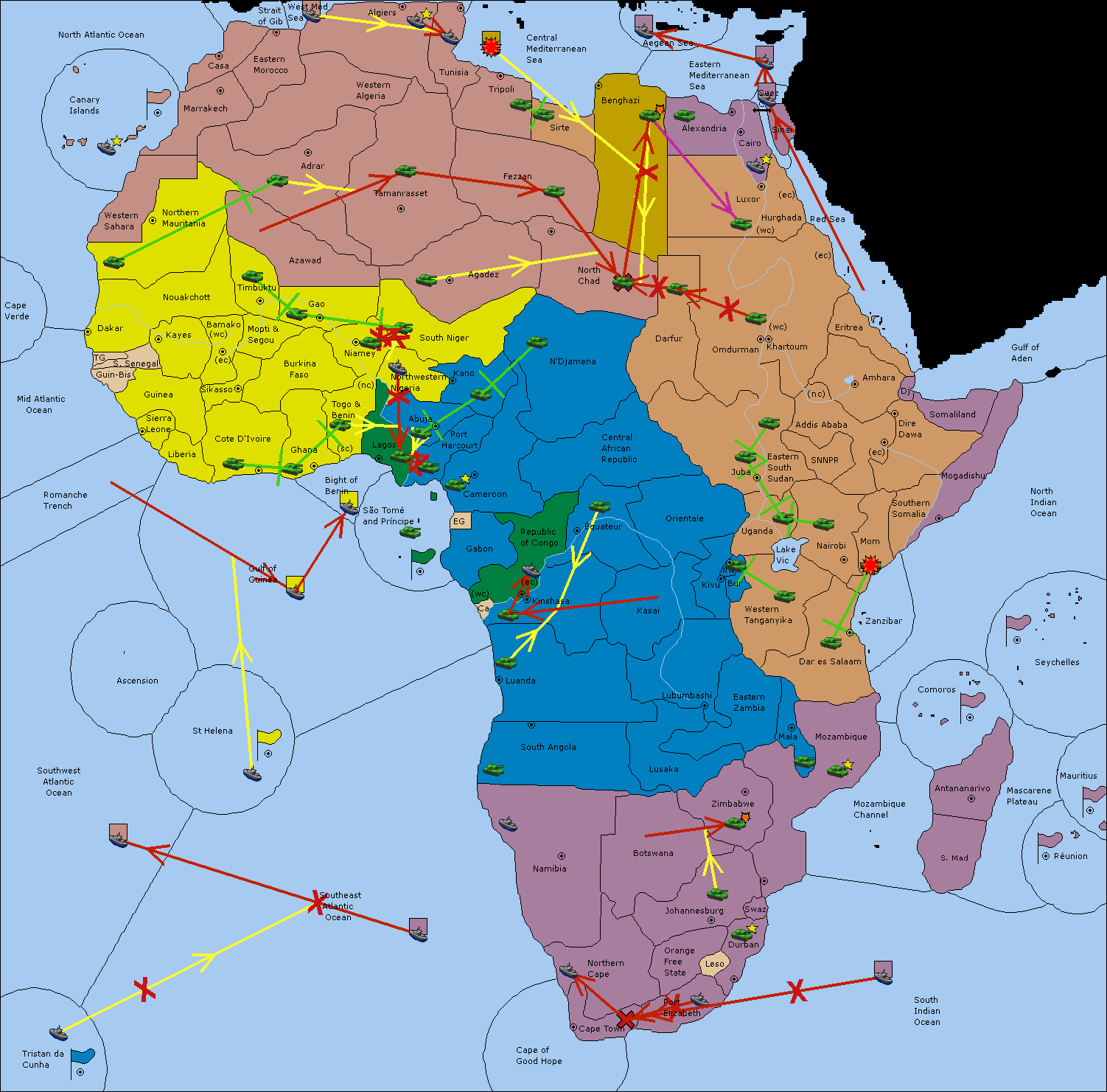 The fleet at Khartoum (West Coast) move to Addis Ababa (North Coast).