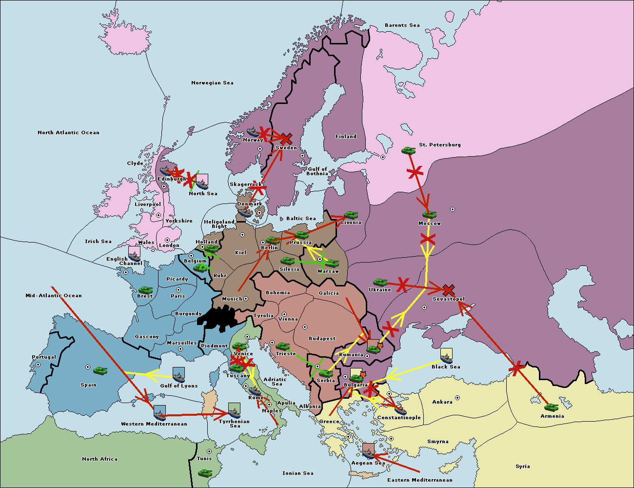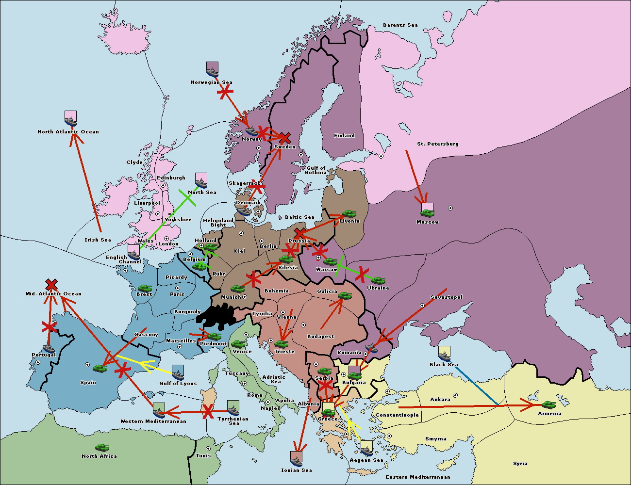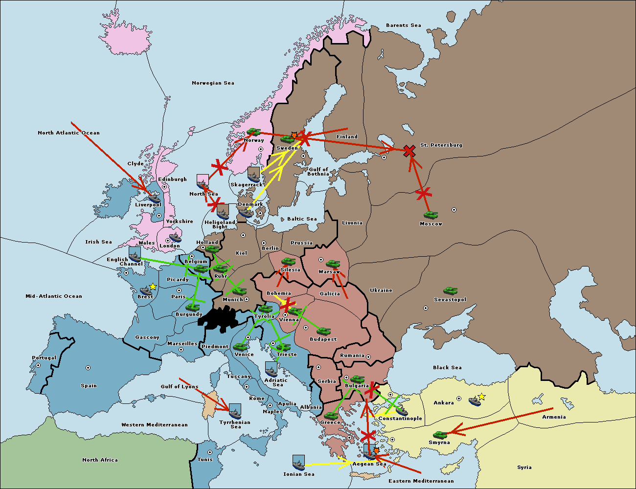 The fleet at Mid-Atlantic Ocean move to Western Mediterranean.