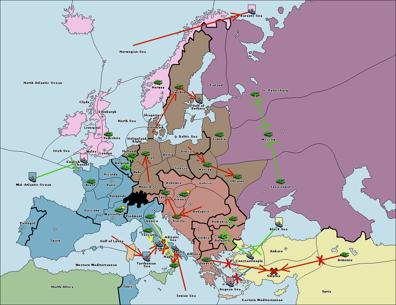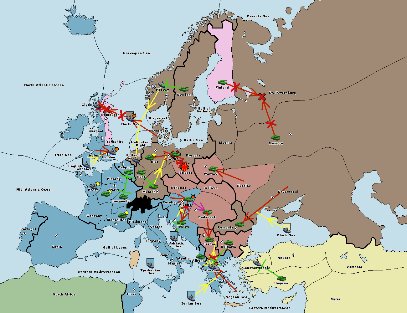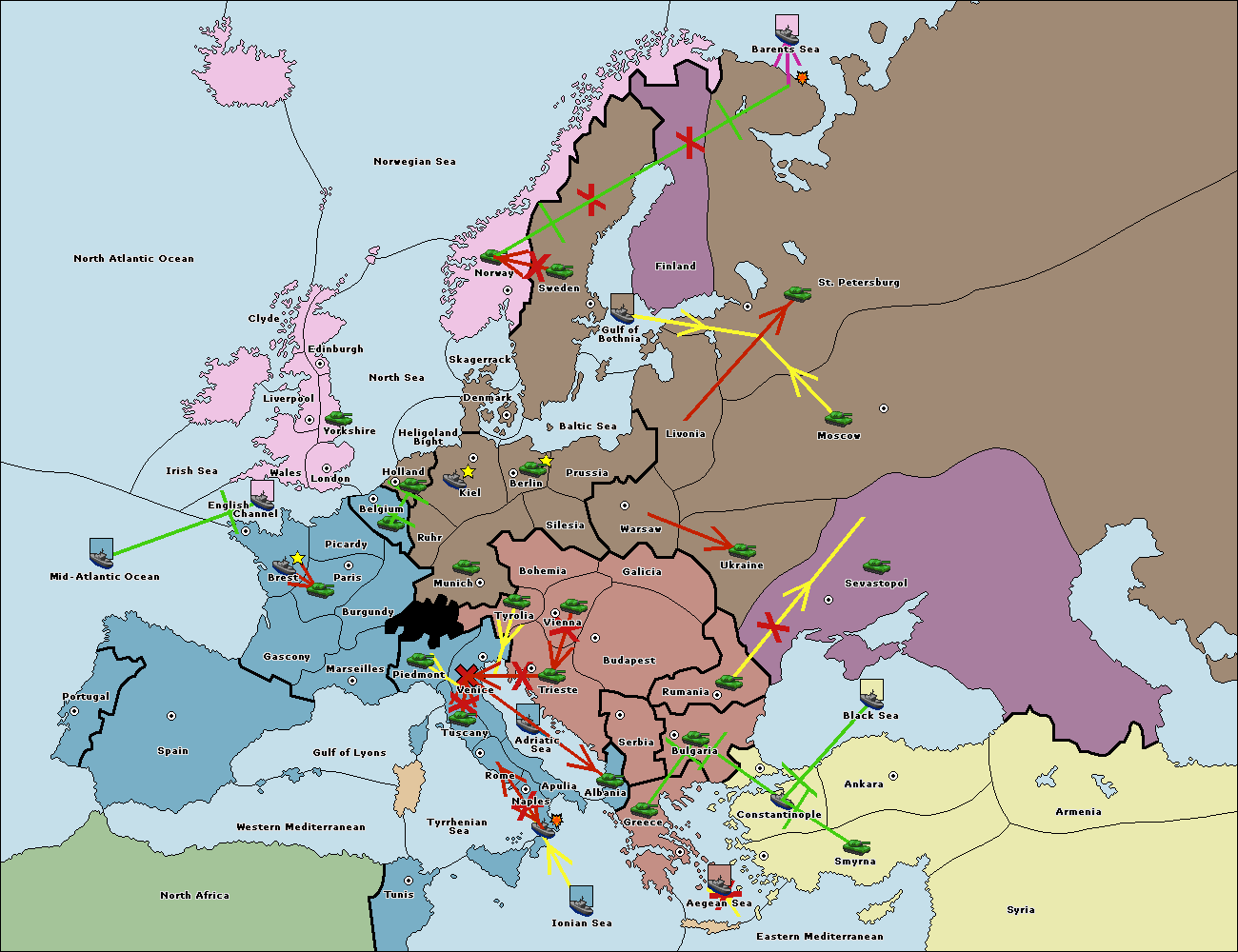 The fleet at Mid-Atlantic Ocean move to Western Mediterranean.