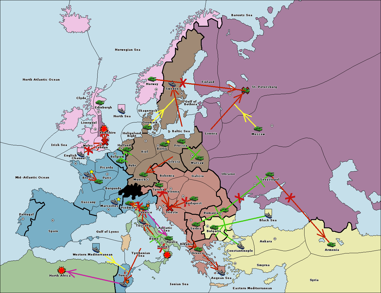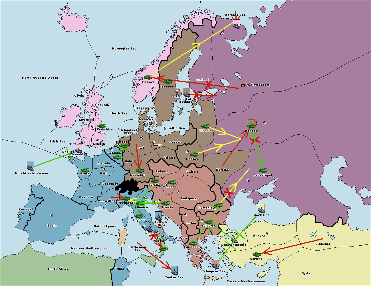 The fleet at St. Petersburg (North Coast) move to Barents Sea.