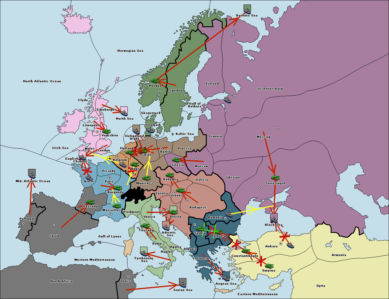 The fleet at Bulgaria (North Coast) move to Constantinople.