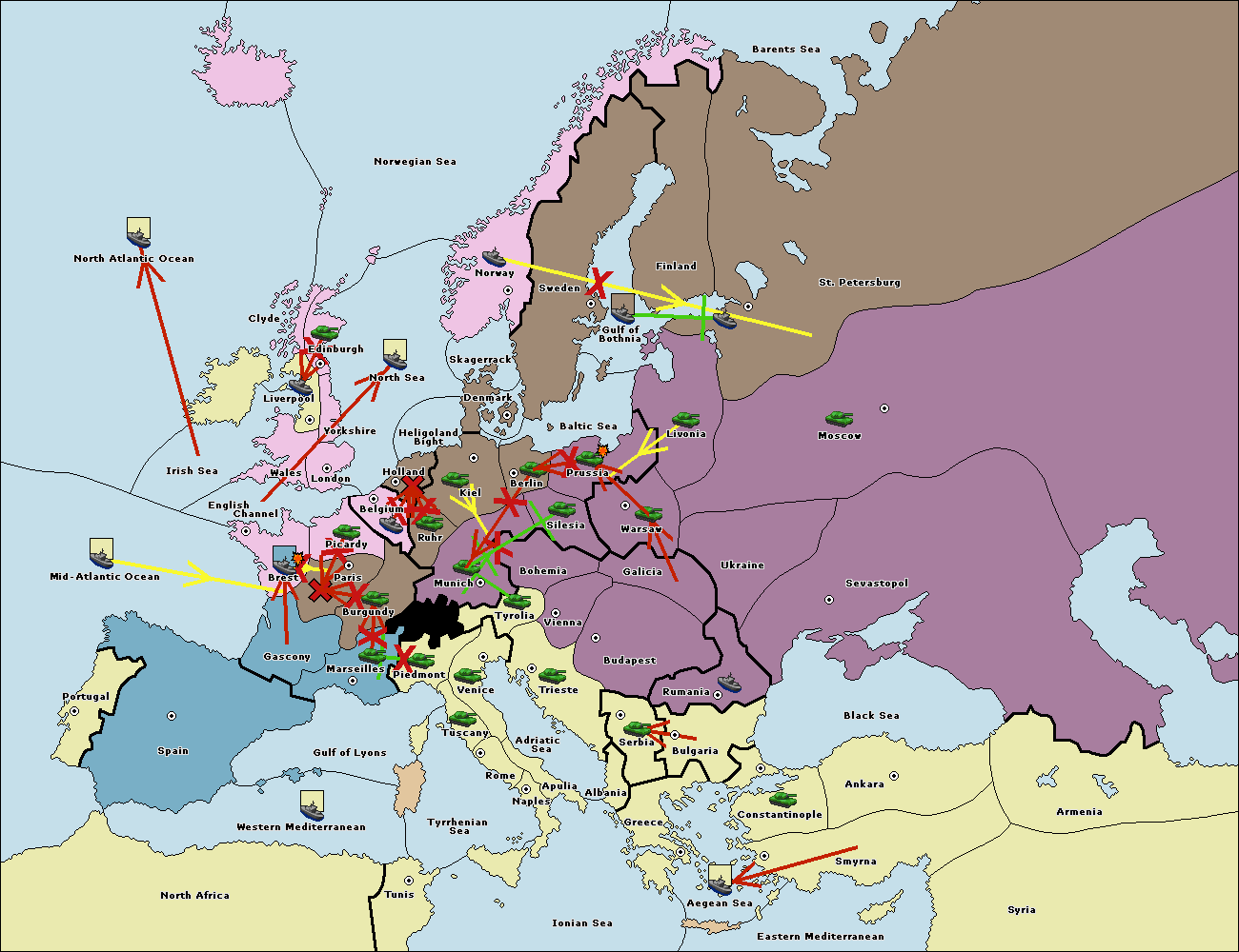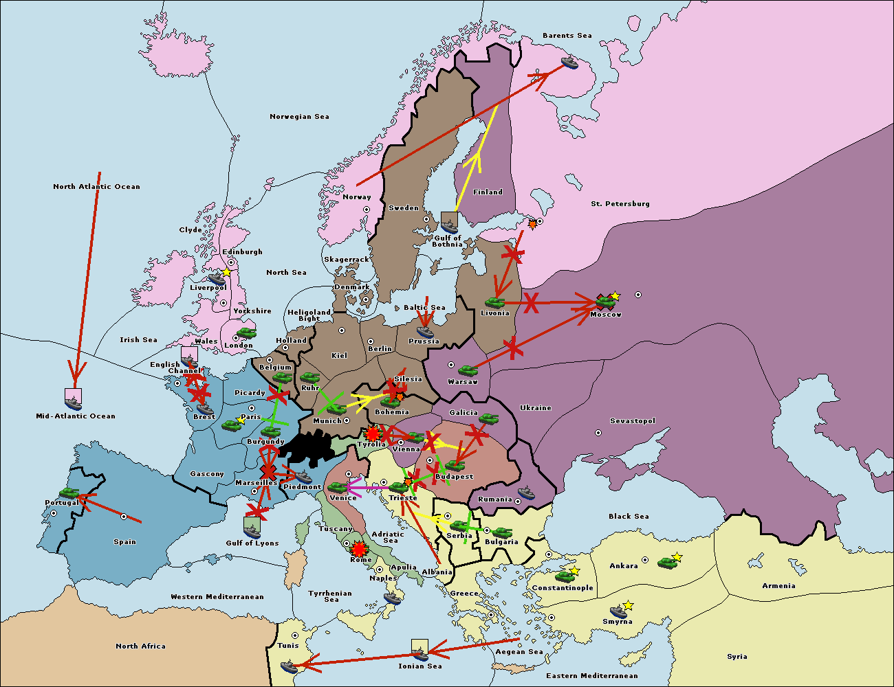 The fleet at Bulgaria (South Coast) move to Aegean Sea.
