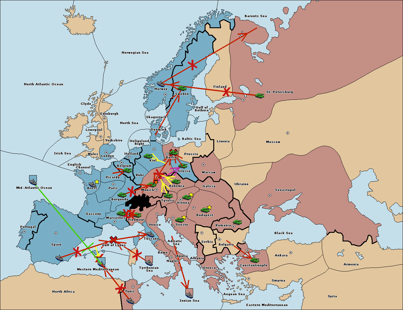The fleet at Mid-Atlantic Ocean move to Western Mediterranean.