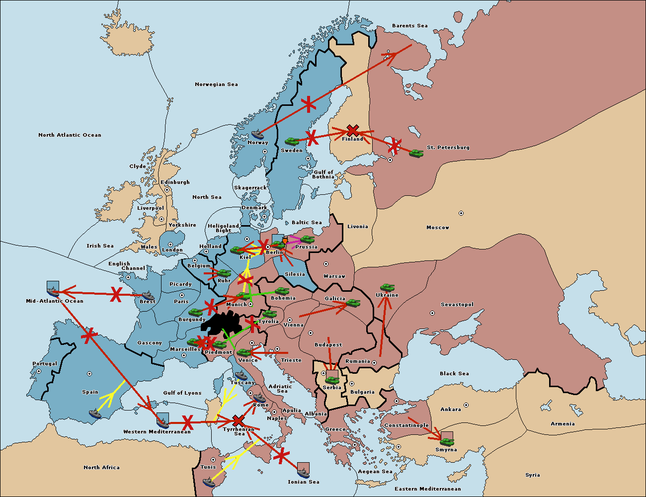 The fleet at Spain (South Coast) support move to Western Mediterranean from Mid-Atlantic Ocean.