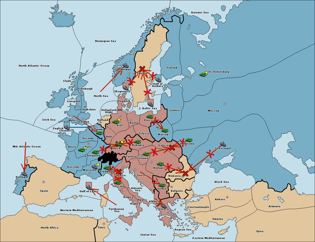 The fleet at Tyrrhenian Sea move to Gulf of Lyons.