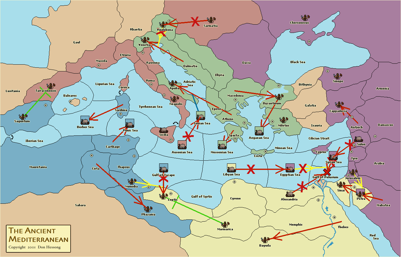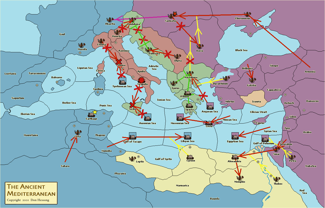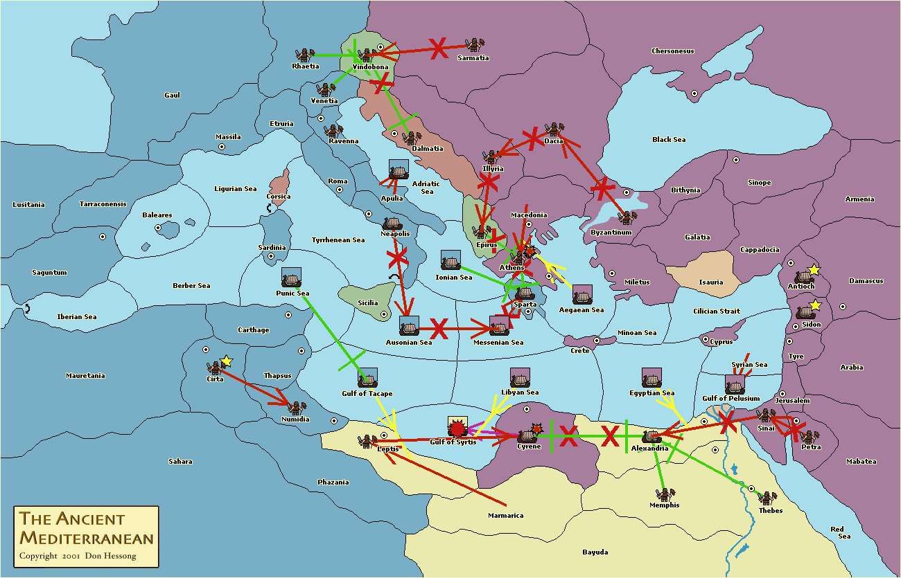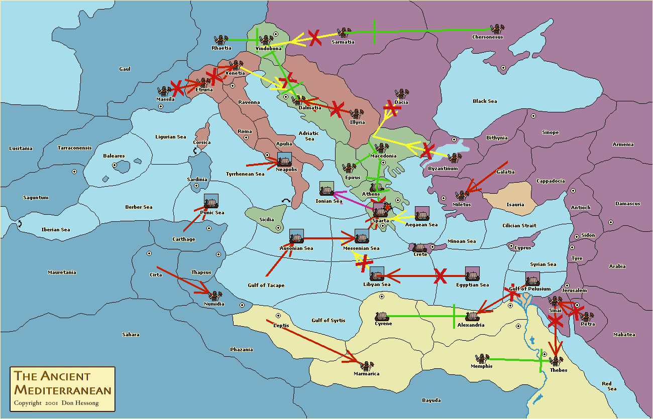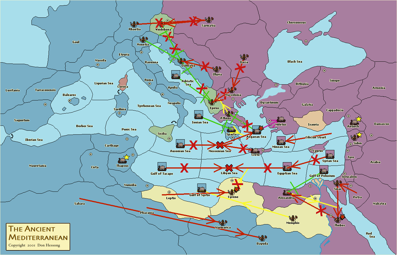 The fleet at Minoan Sea support move to Crete from Egyptian Sea.