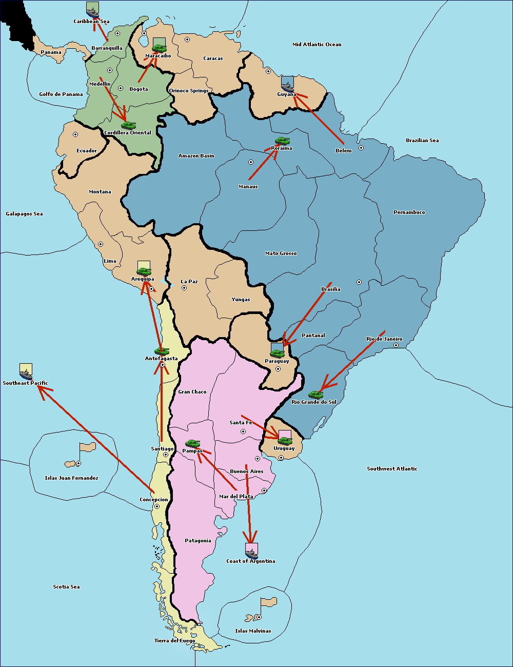 The army at Amazon Basin move to Orinoco Springs.