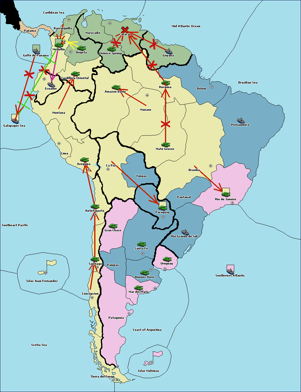 The fleet at Mid Atlantic Ocean move to Caracas.