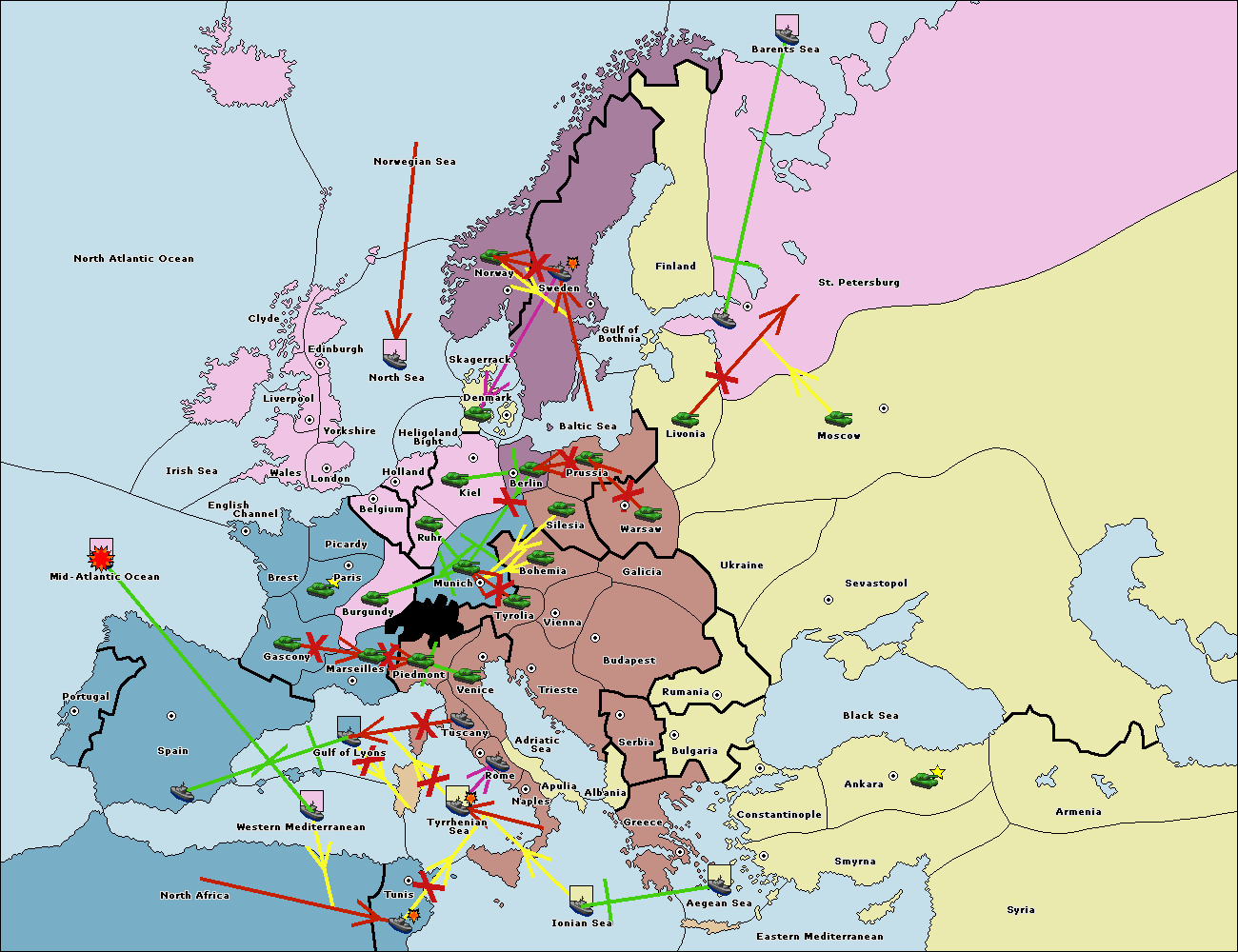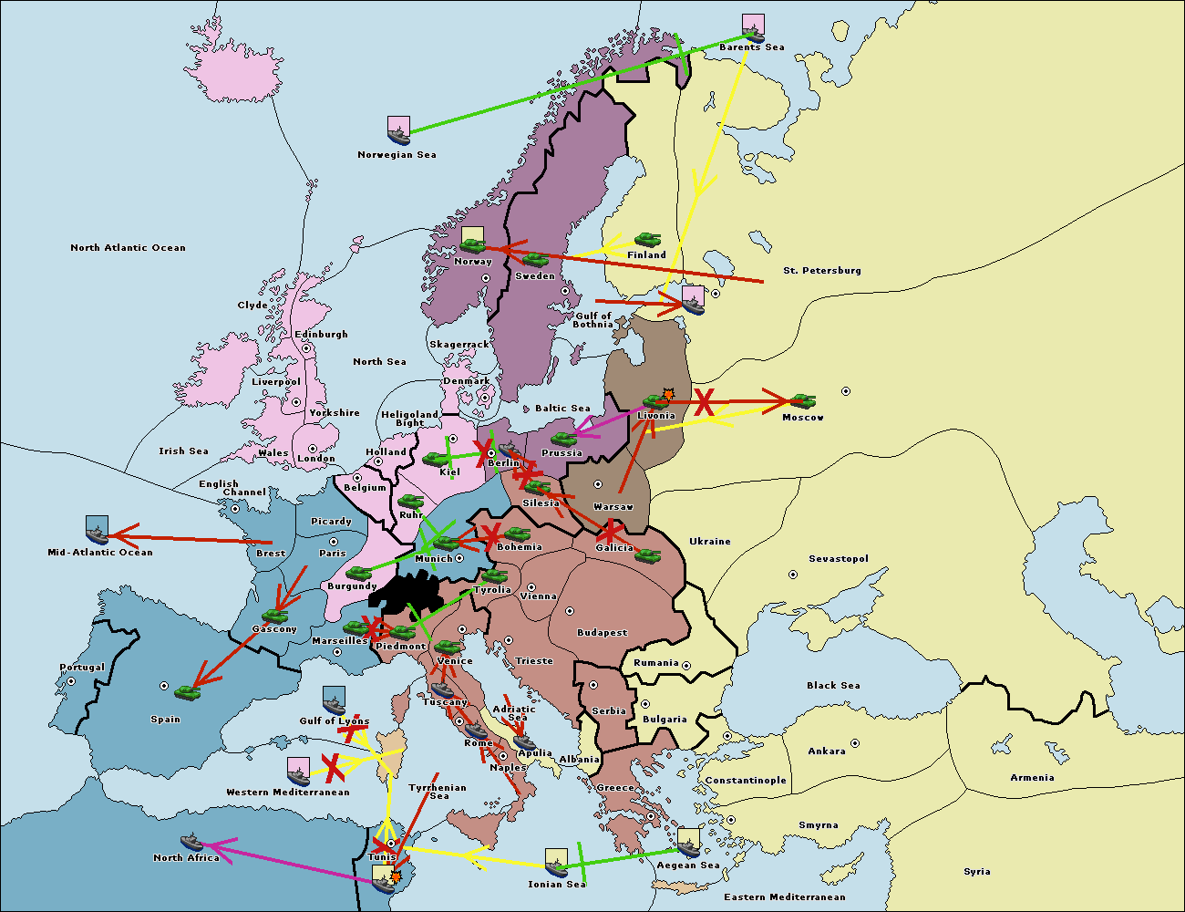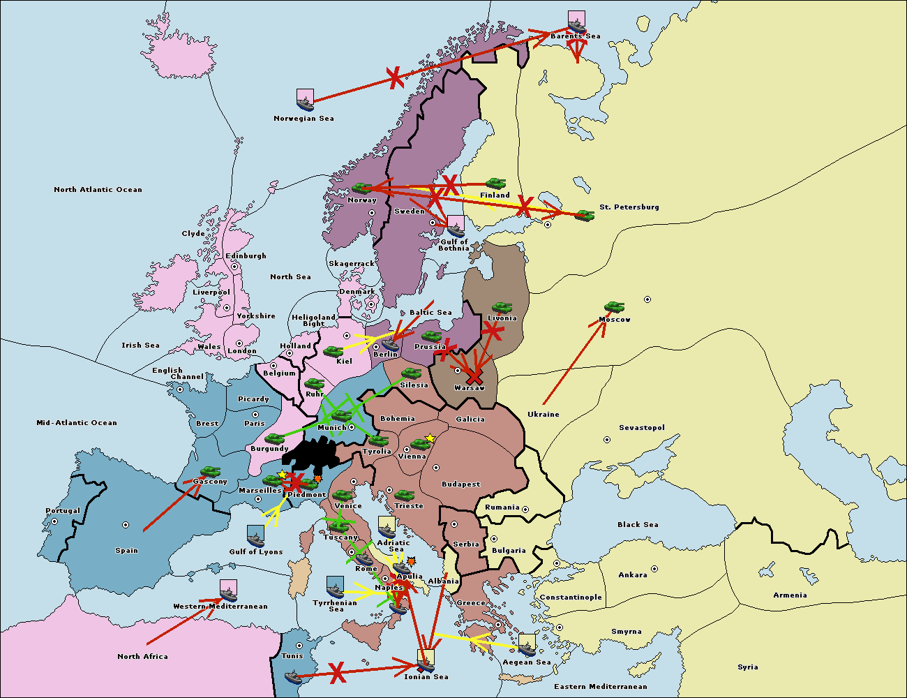 The fleet at Mid-Atlantic Ocean move to Western Mediterranean.