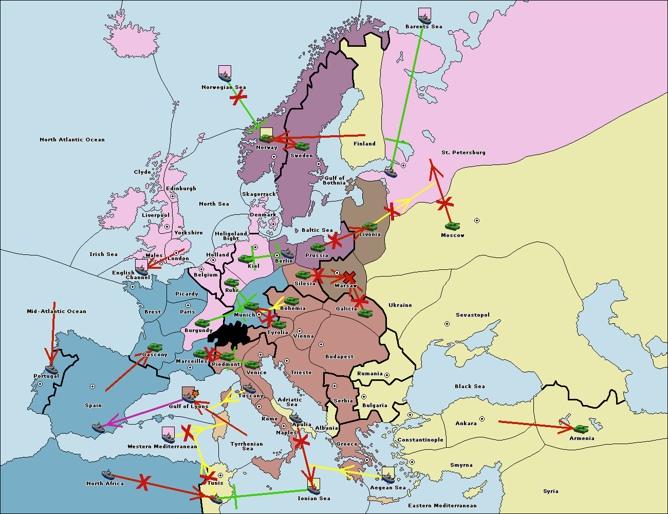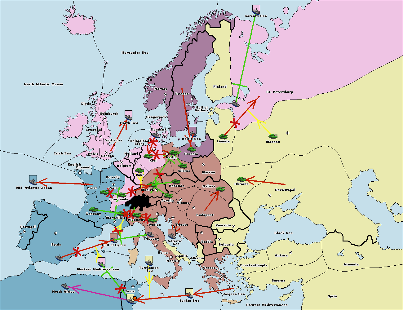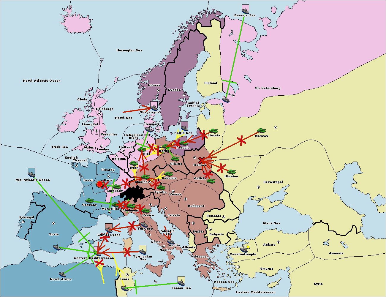 The fleet at Mid-Atlantic Ocean move to Western Mediterranean.