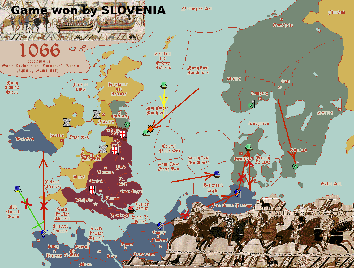 The fleet at Southwest North Sea move to Northwest North Sea.