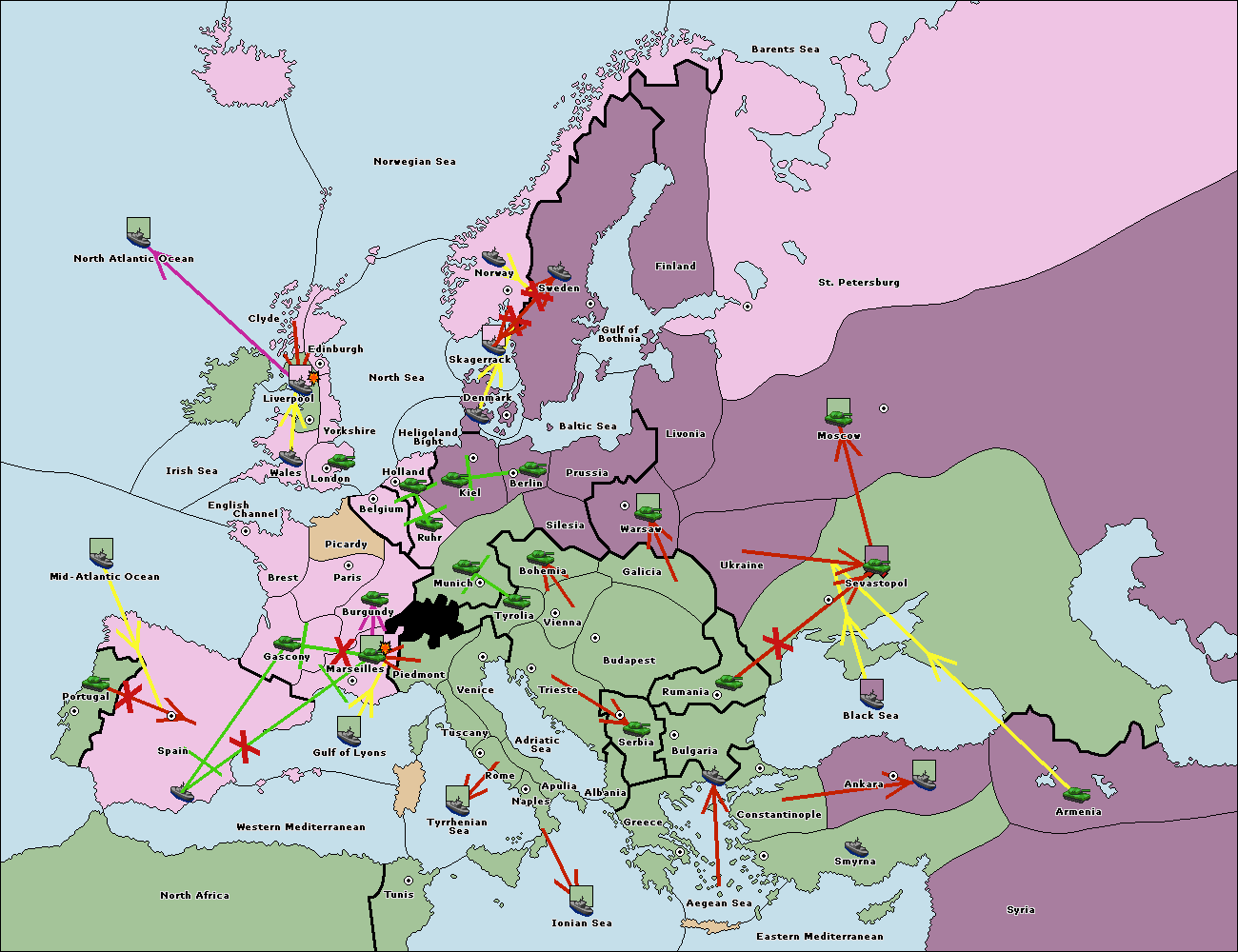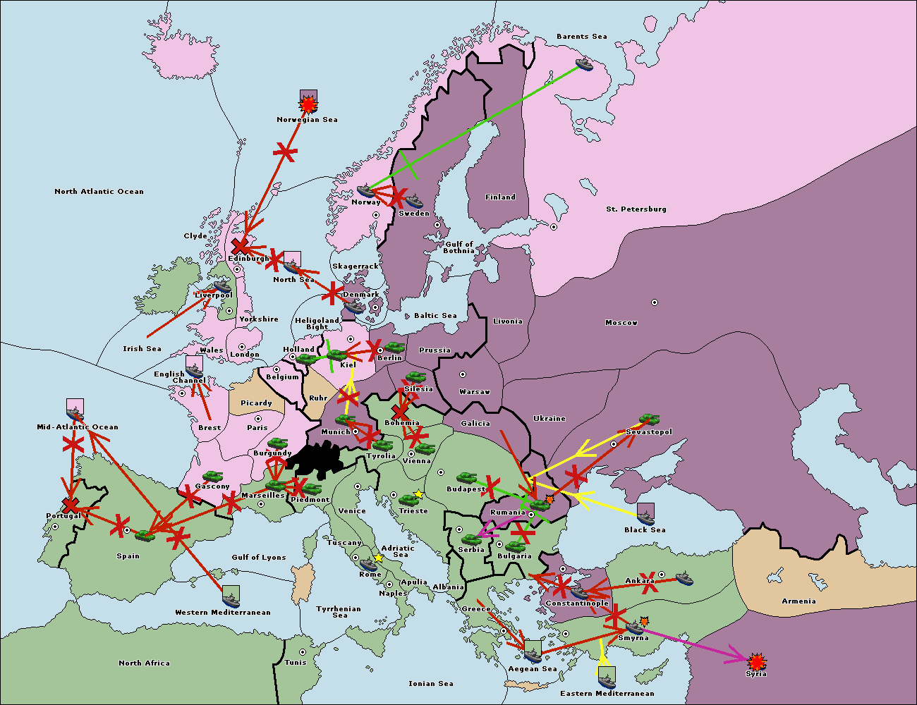 The fleet at Bulgaria (South Coast) support move to Constantinople from Black Sea.