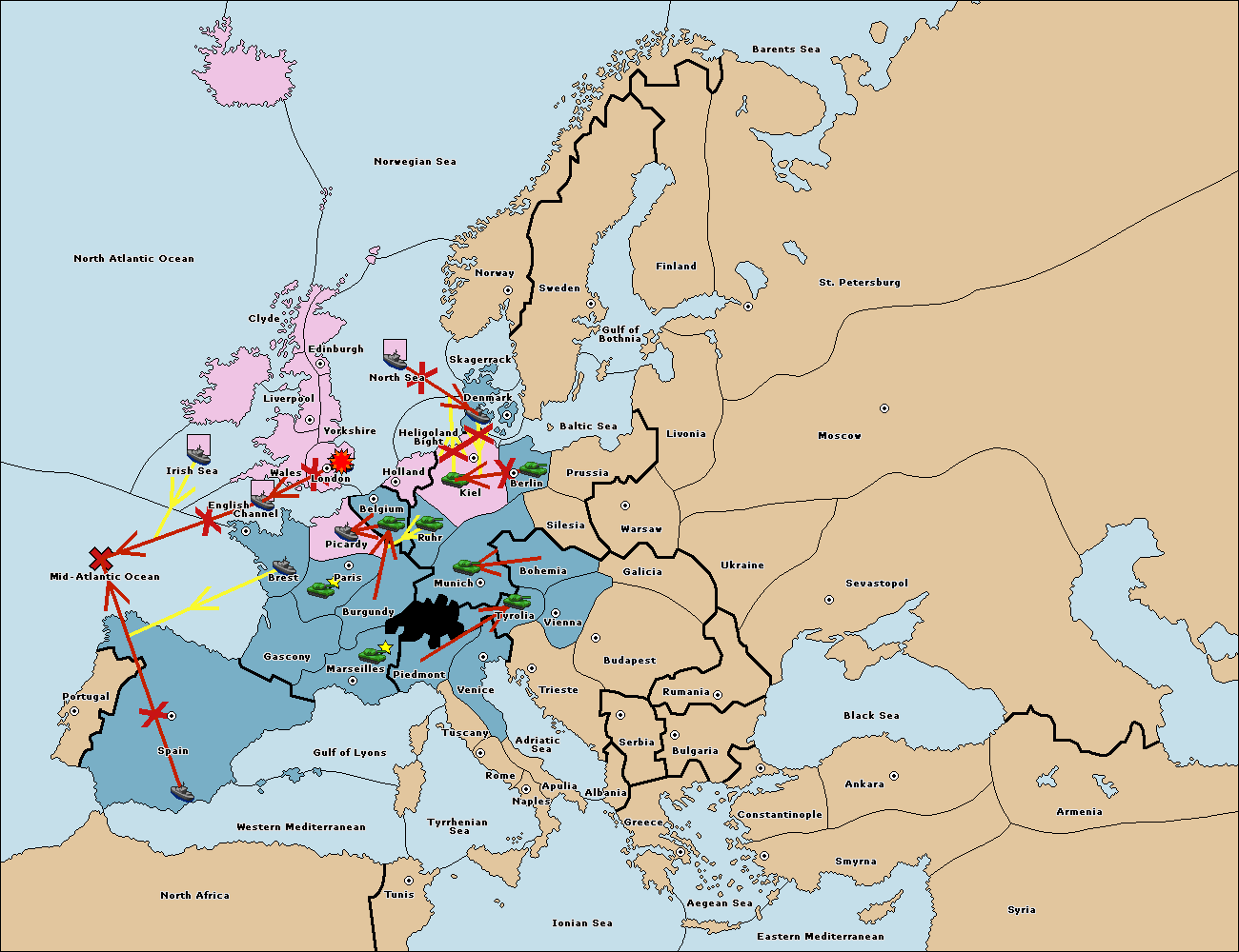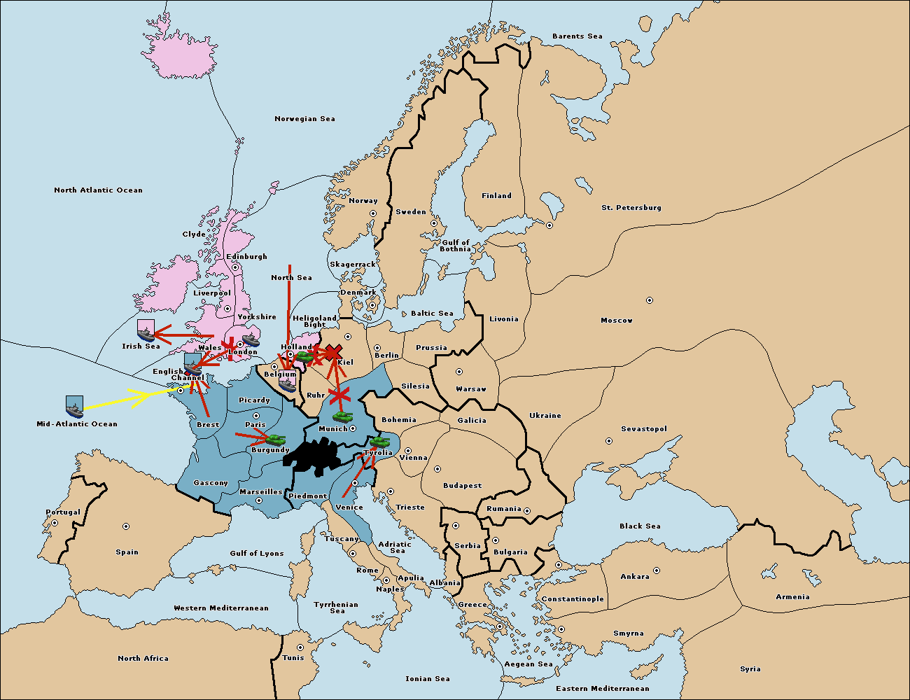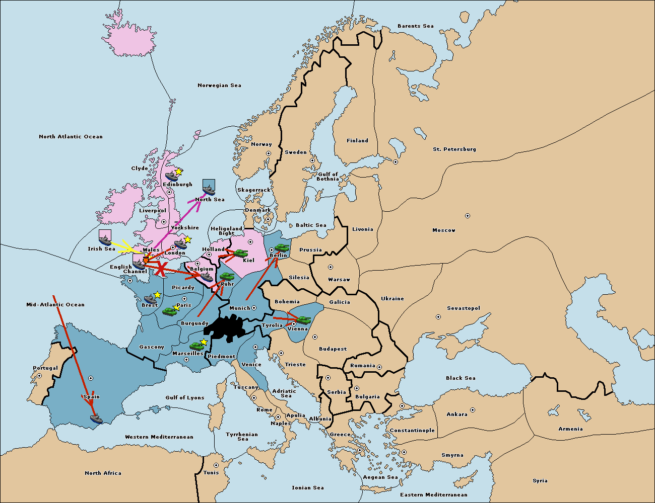 The fleet at Mid-Atlantic Ocean support move to English Channel from Brest.