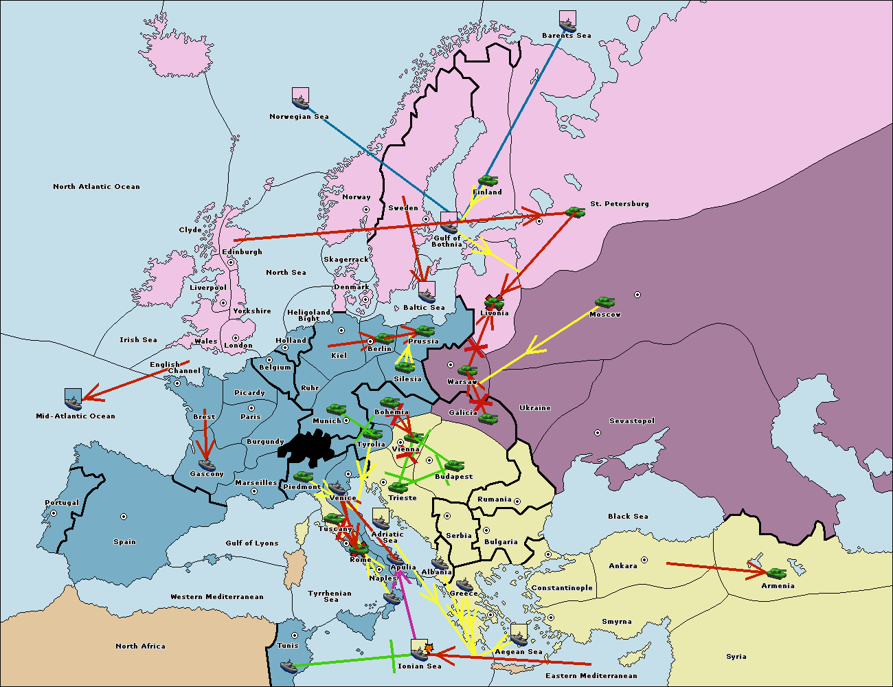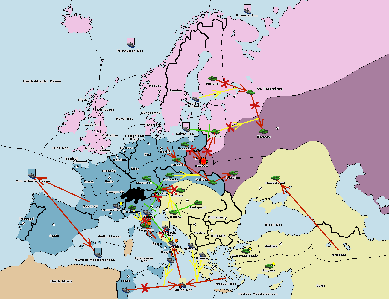 The fleet at Bulgaria (South Coast) move to Greece.