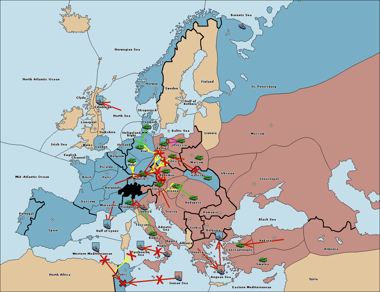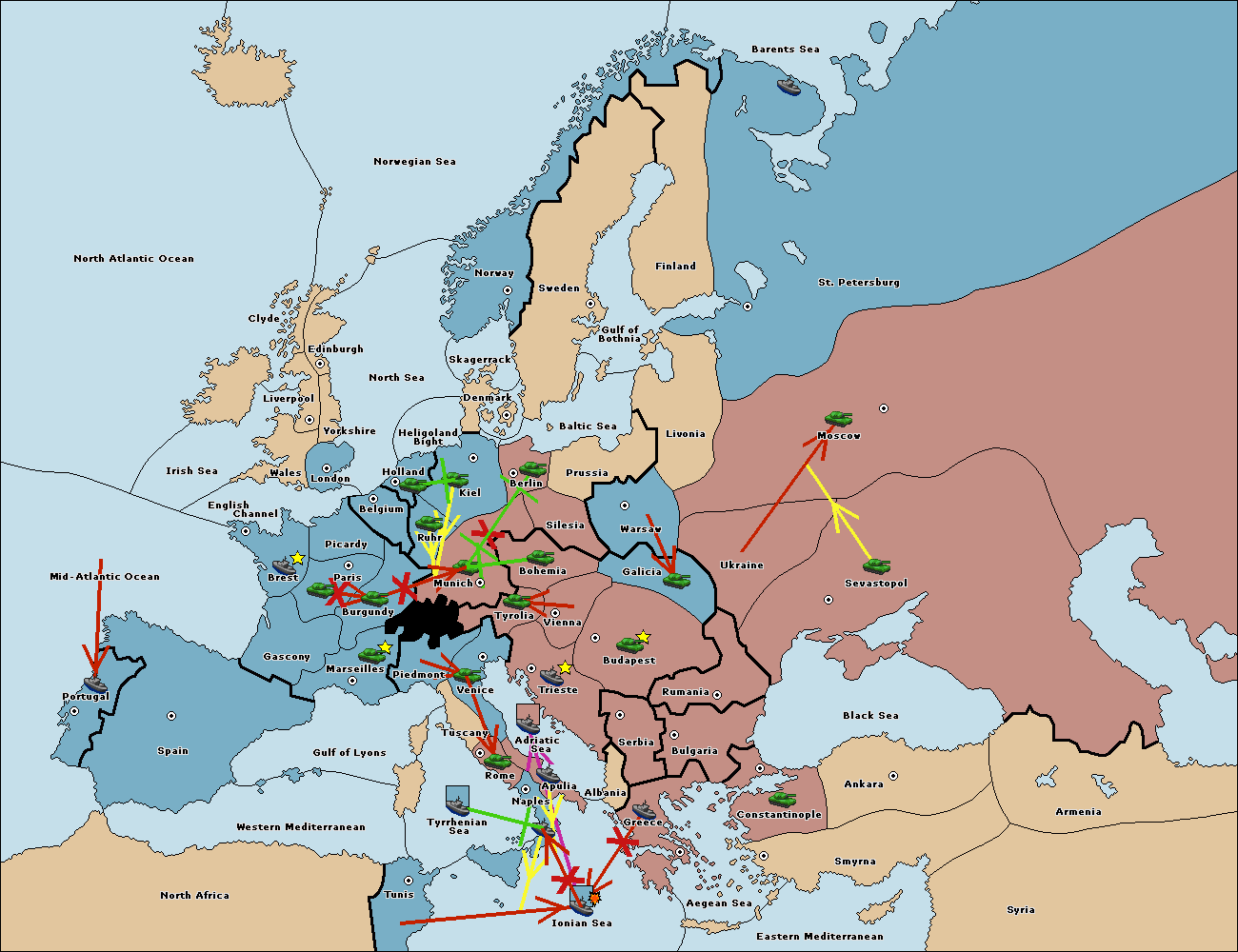 The fleet at Naples support move to Ionian Sea from Tunis.