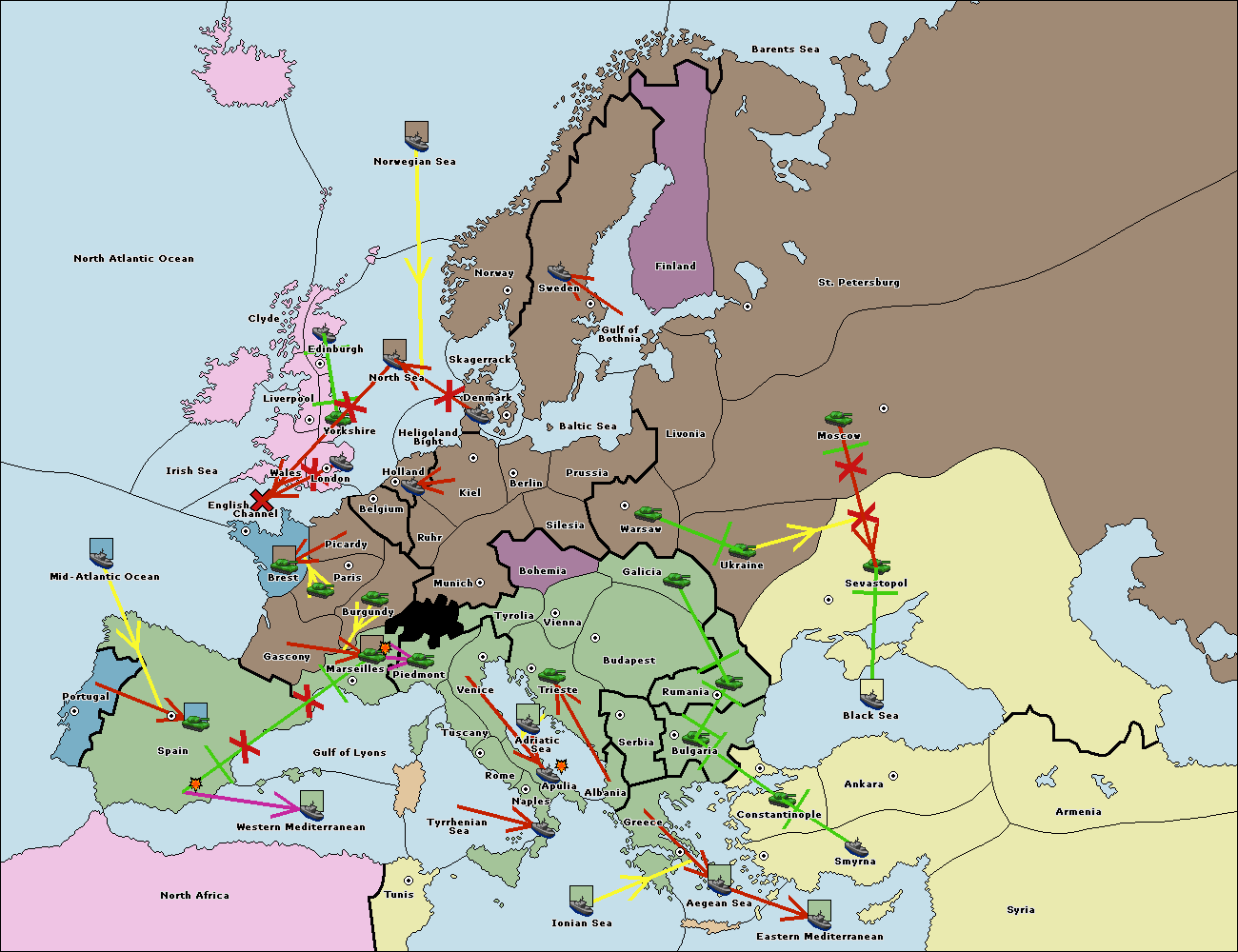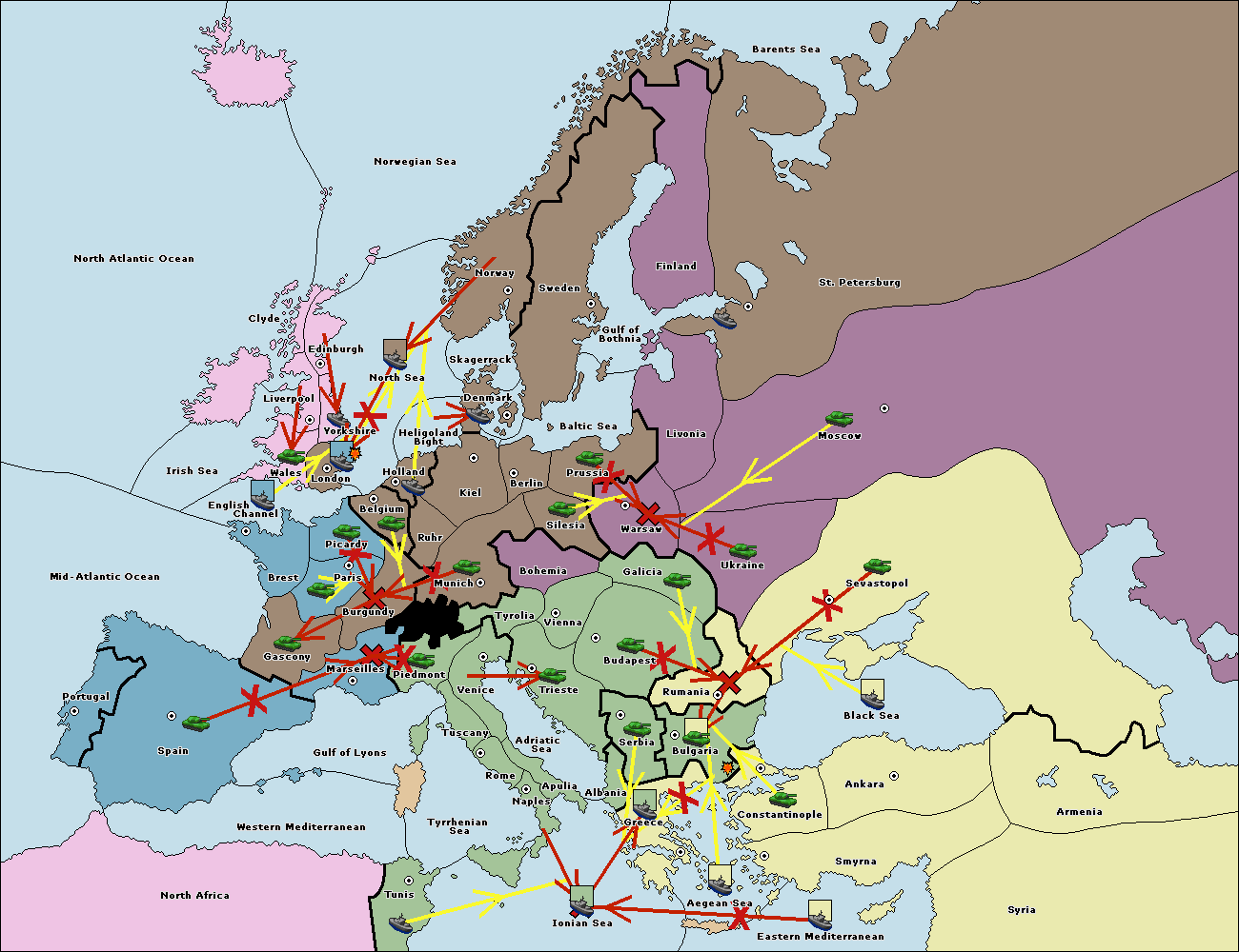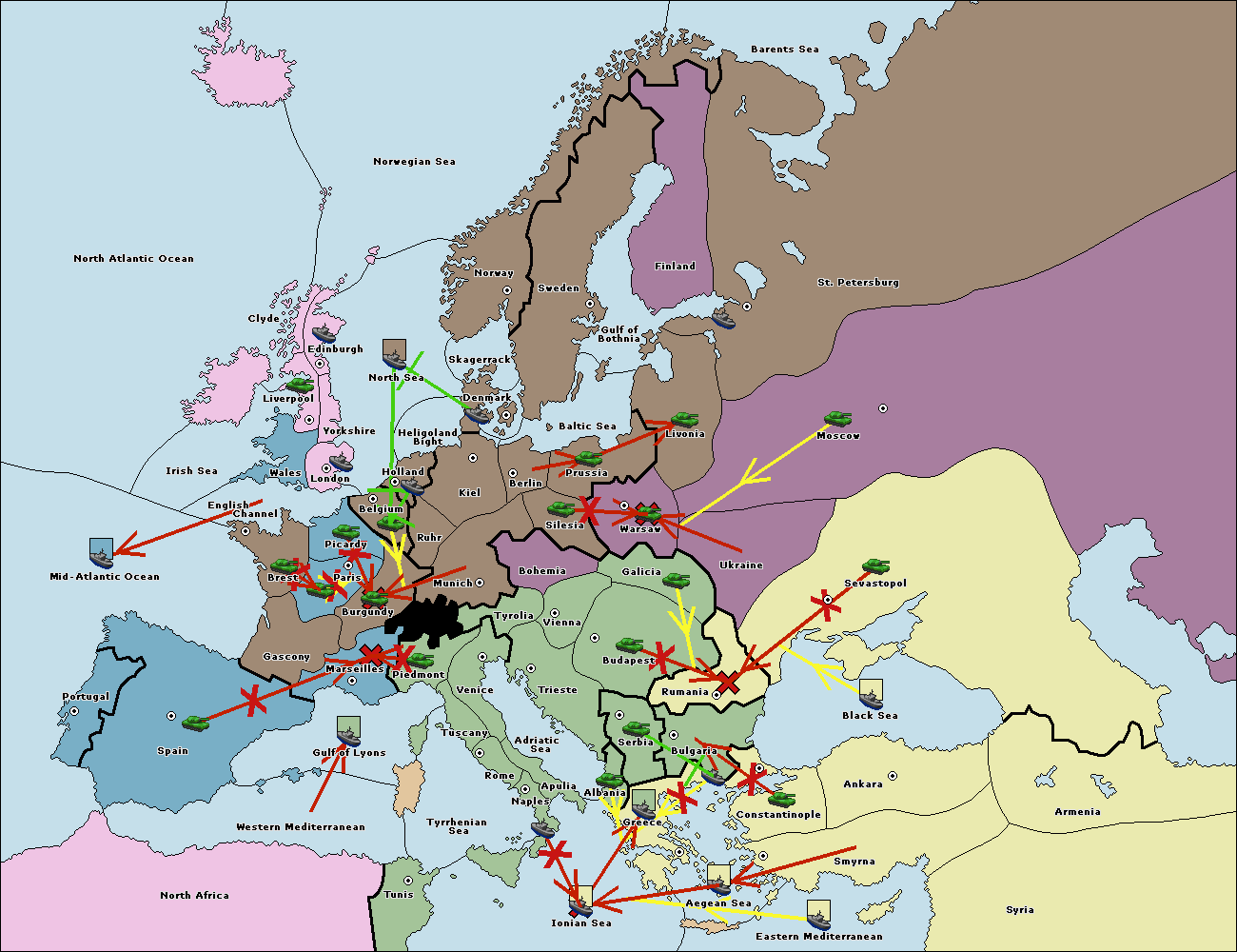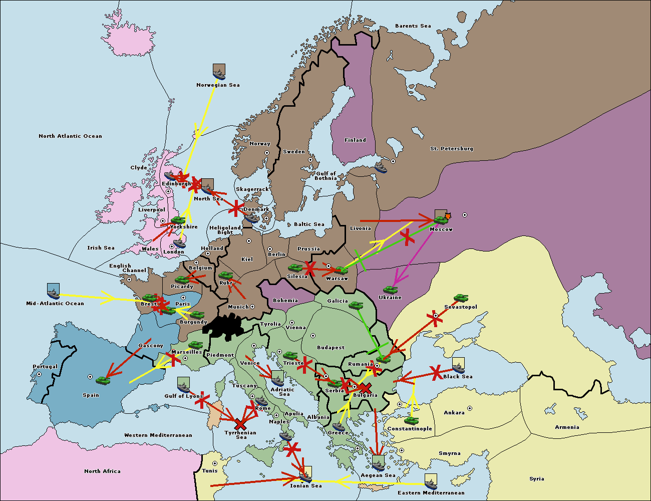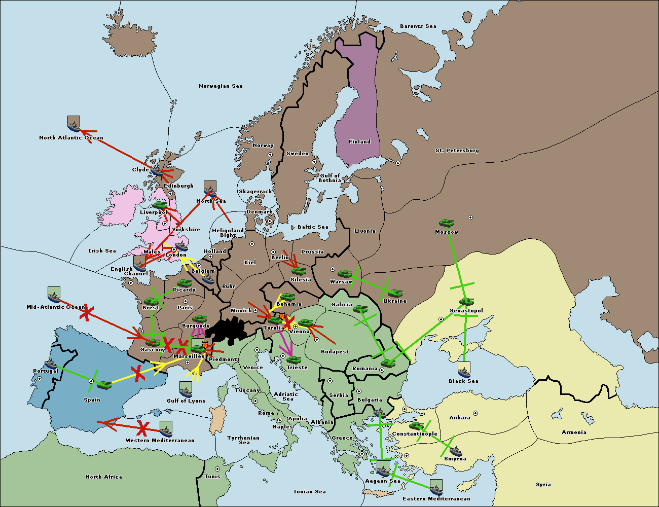 The fleet at Spain (South Coast) support move to Marseilles from Gulf of Lyons.