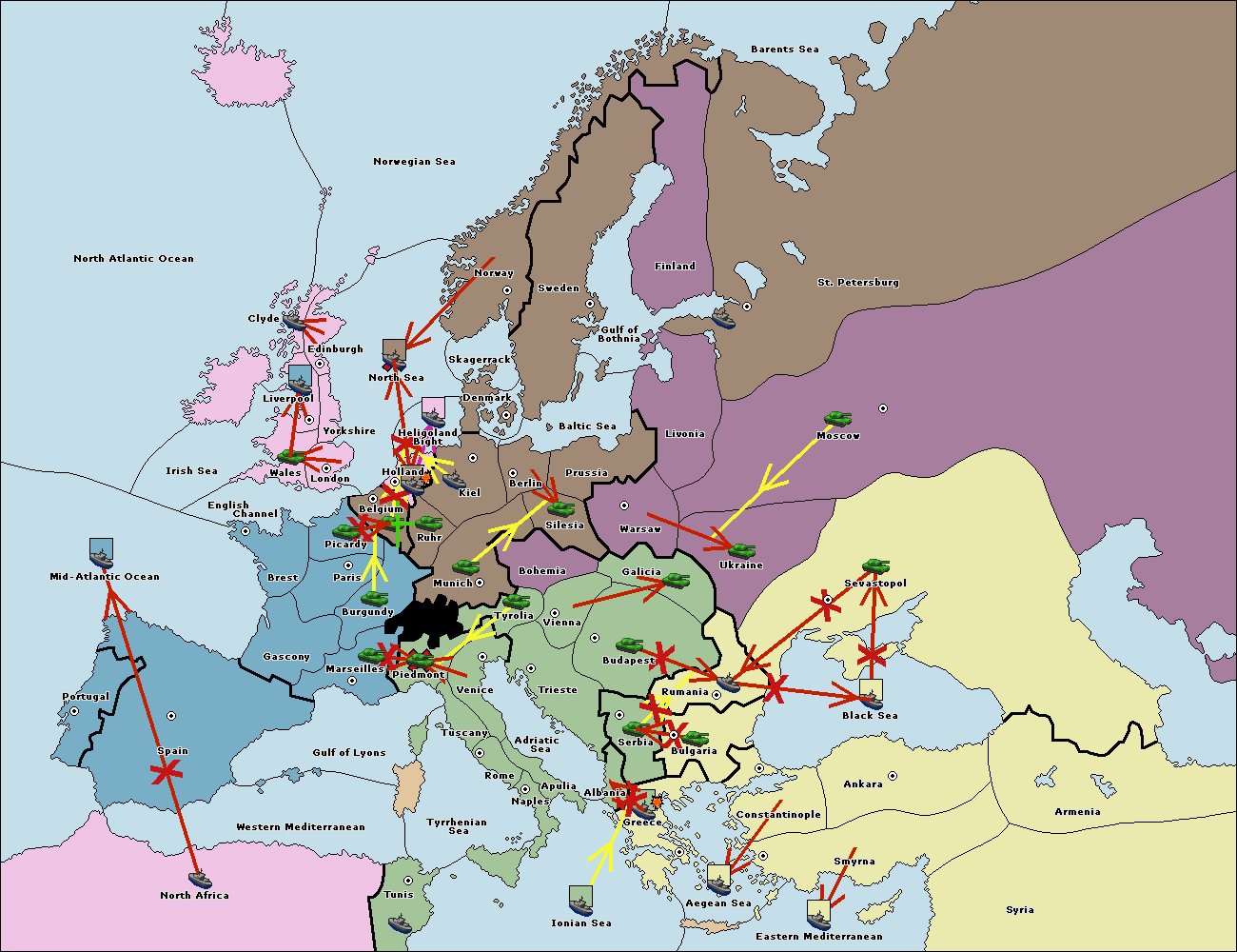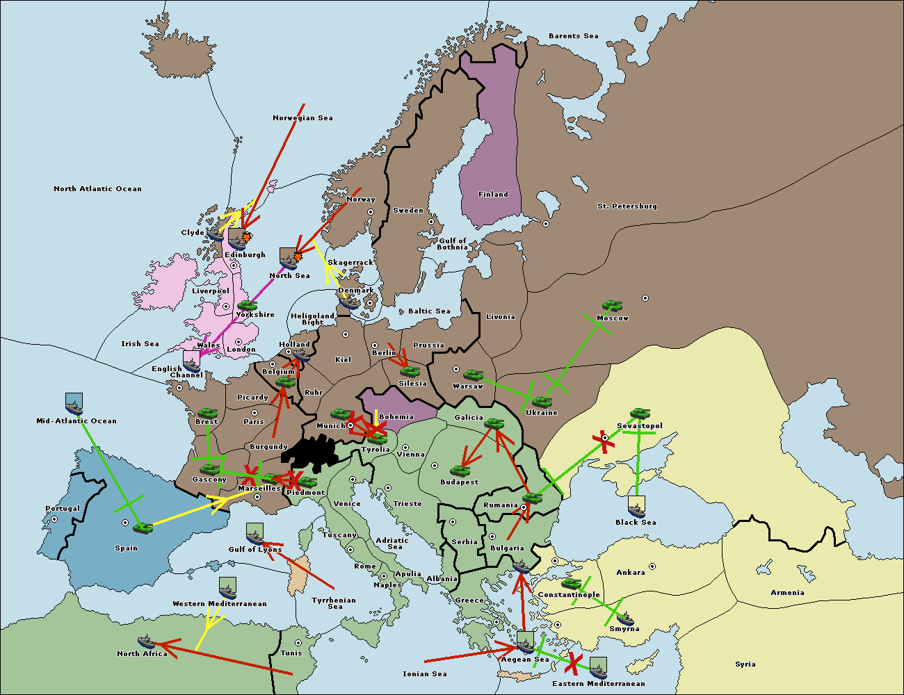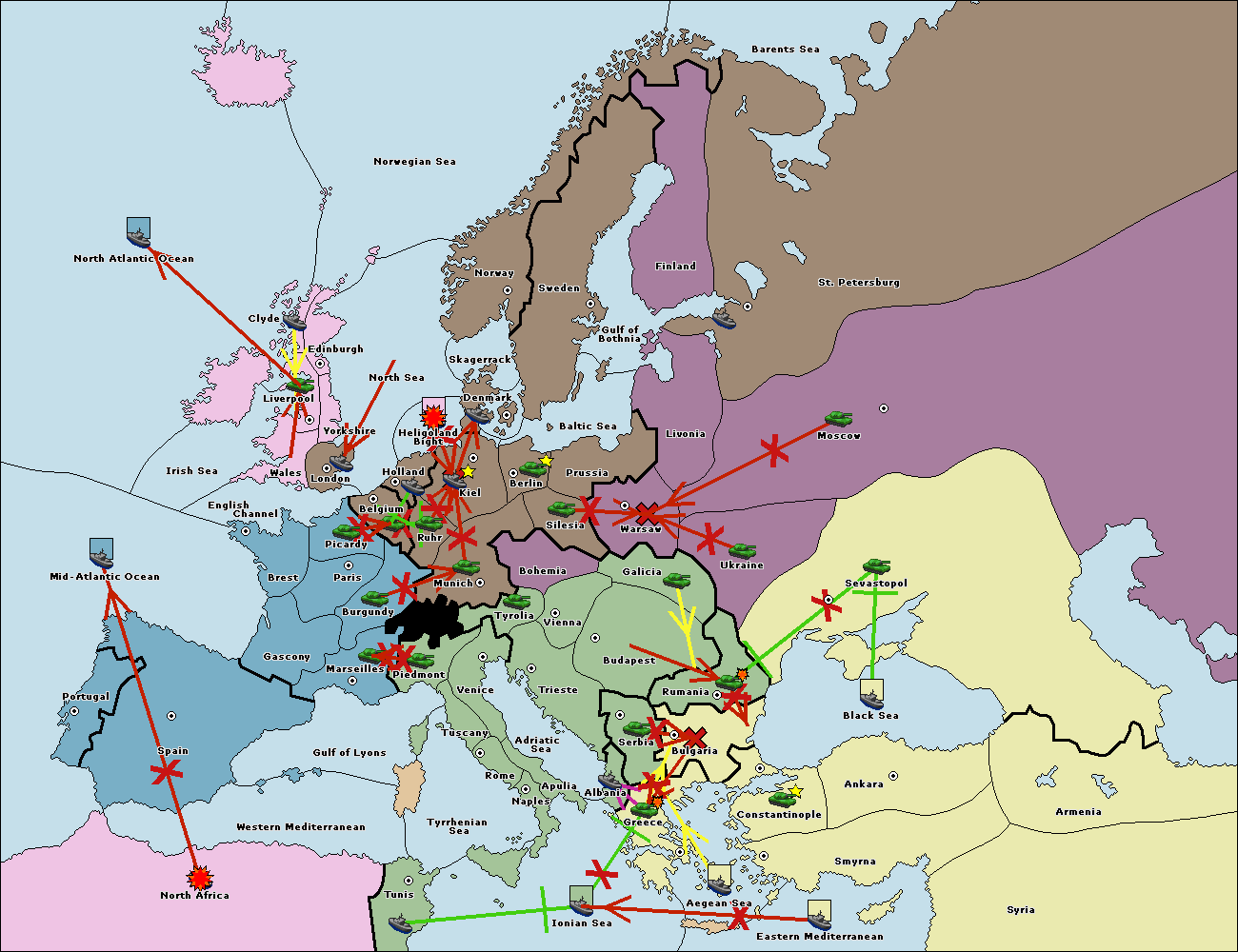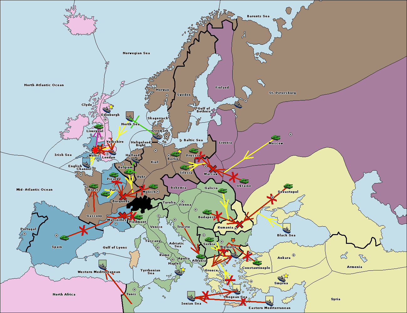The fleet at Spain (South Coast) support move to Marseilles from Gulf of Lyons.