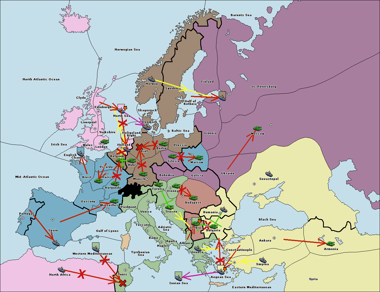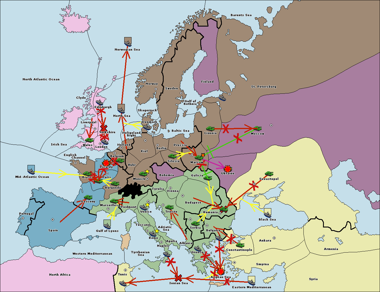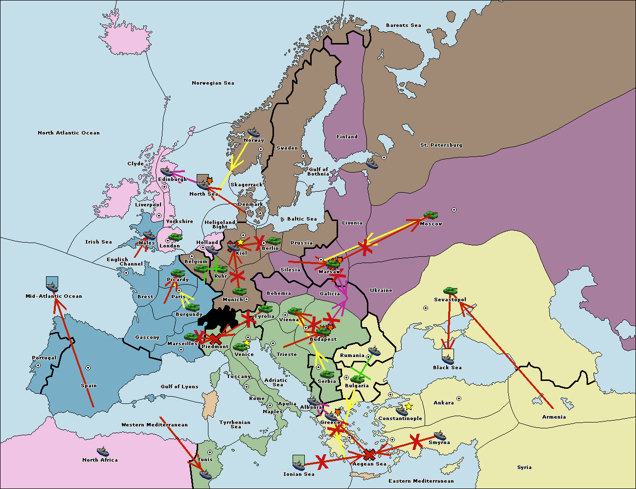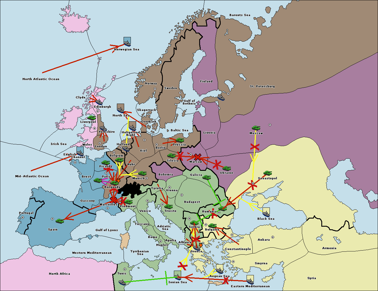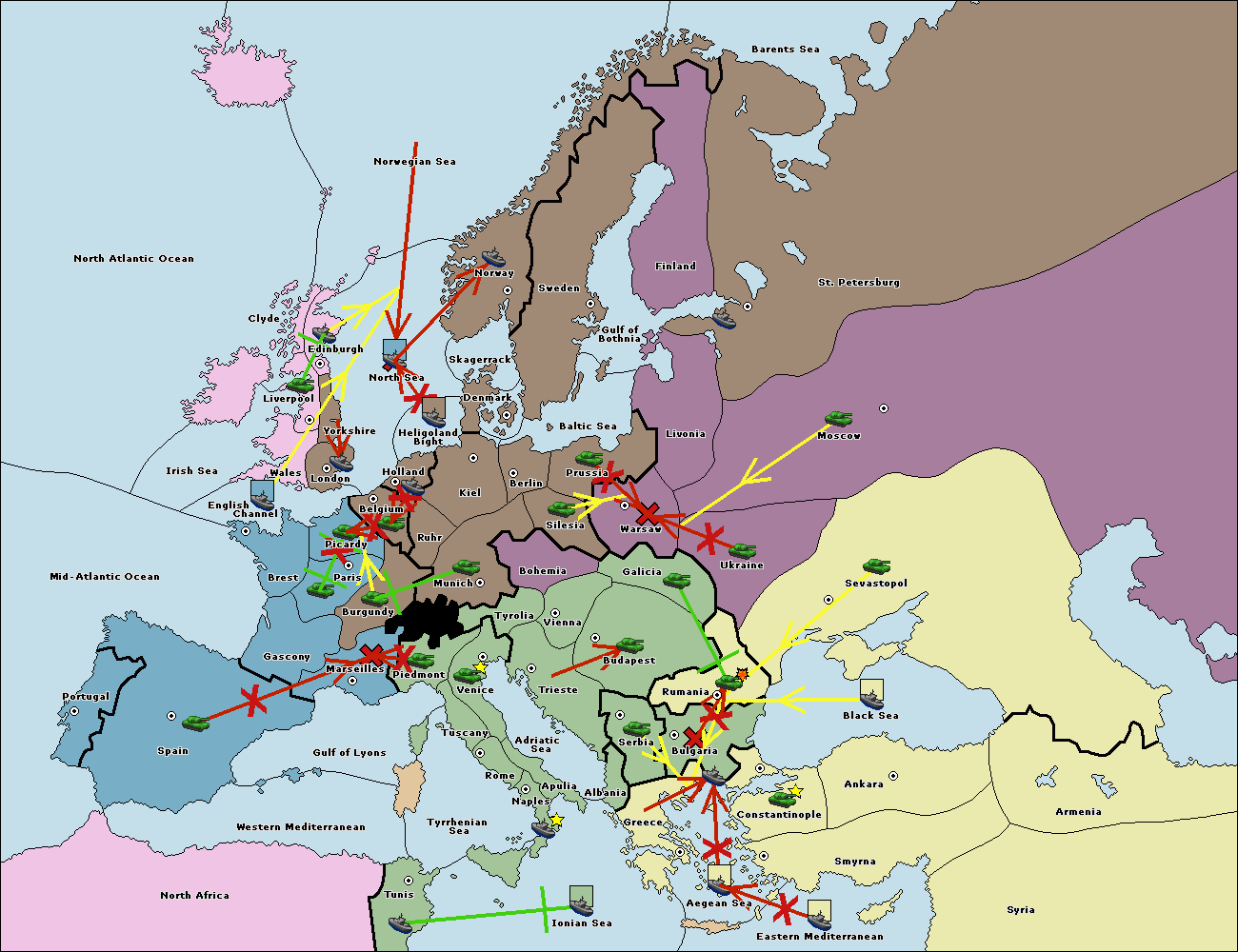 The fleet at Spain (South Coast) support move to Marseilles from Gulf of Lyons.