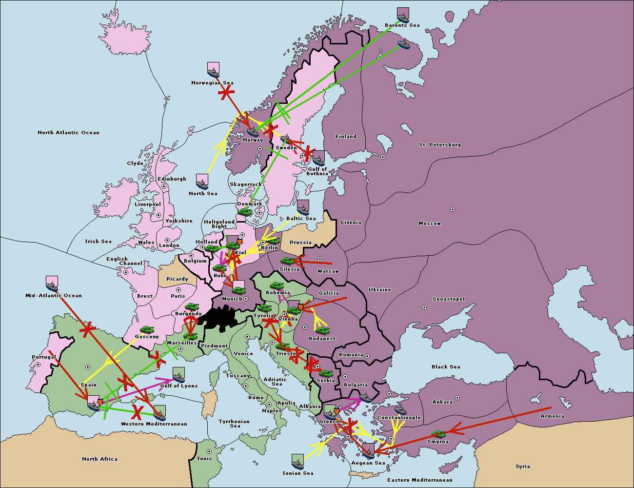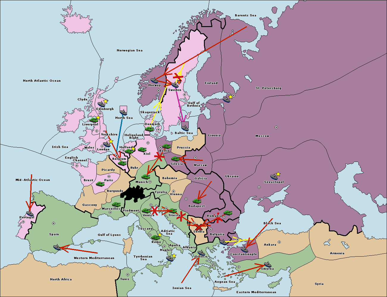 The fleet at Bulgaria (South Coast) support move to Constantinople from Black Sea.