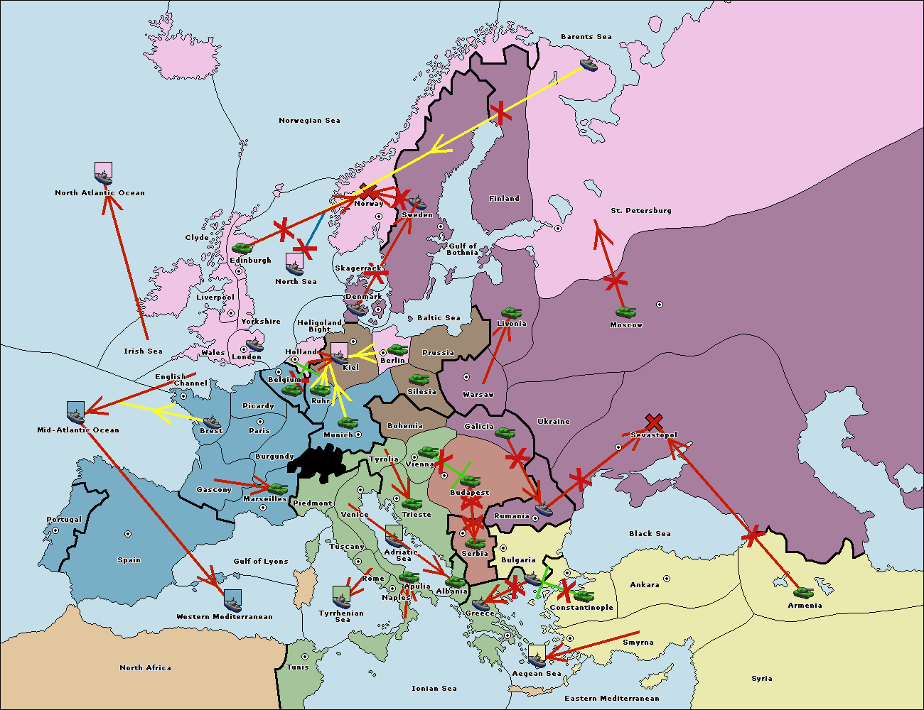 The fleet at Mid-Atlantic Ocean move to Western Mediterranean.