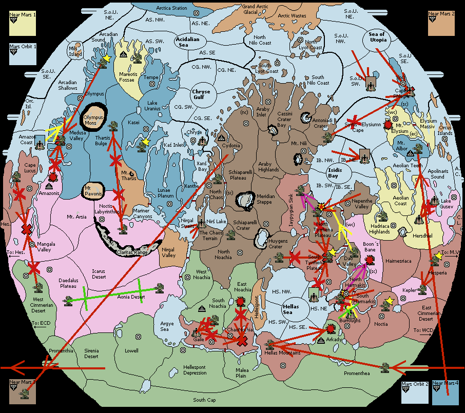 The fleet at Antoniadi Crater move to Syrtis - Elysiumn Cape.