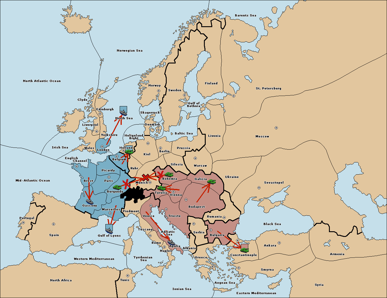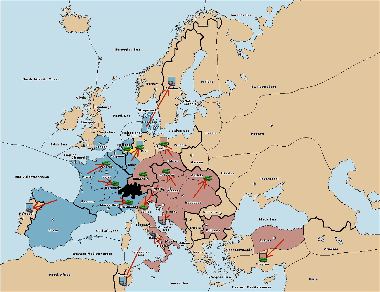 The fleet at Ionian Sea support move to Tunis from Tyrrhenian Sea.