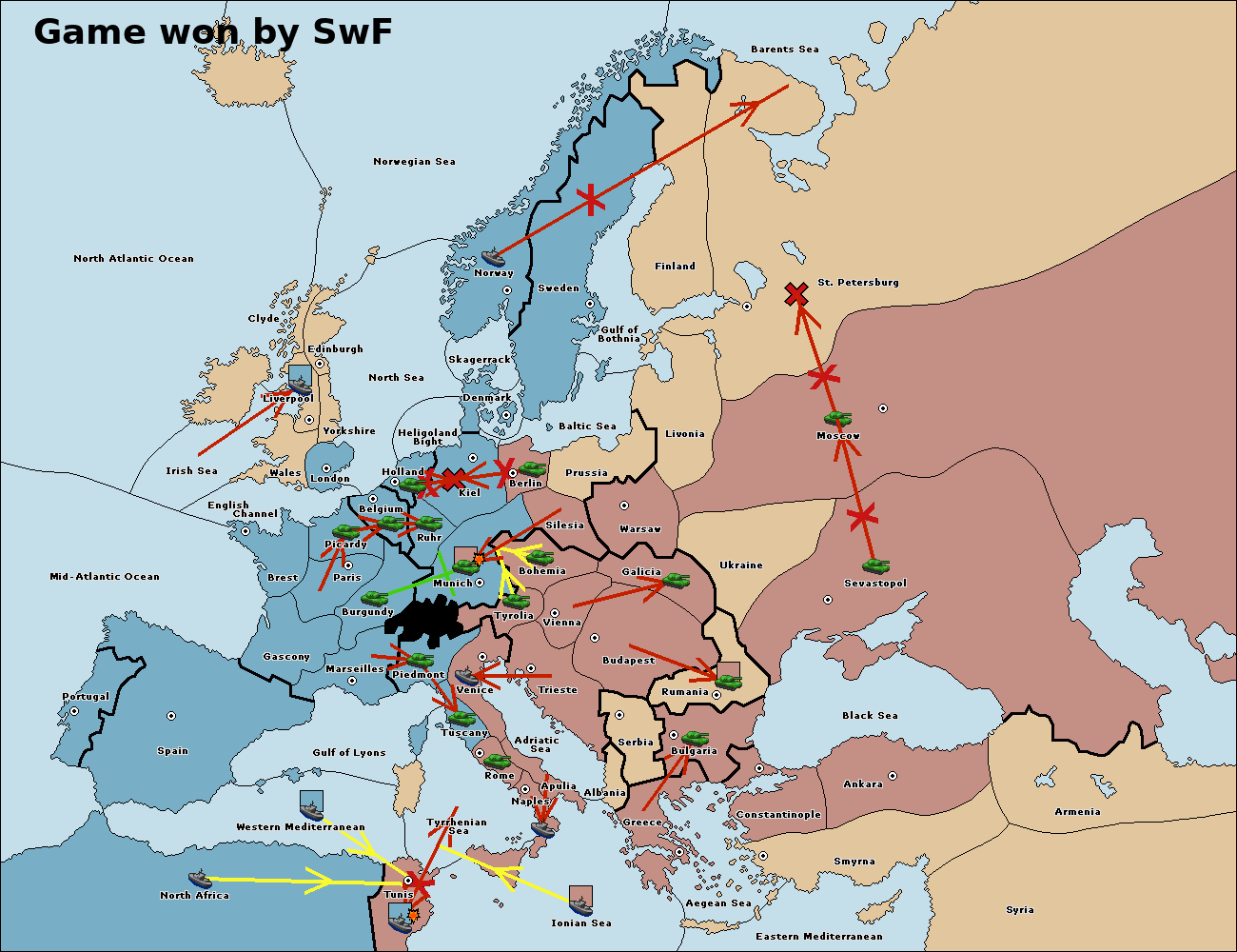 The fleet at Ionian Sea support move to Tyrrhenian Sea from Tunis.