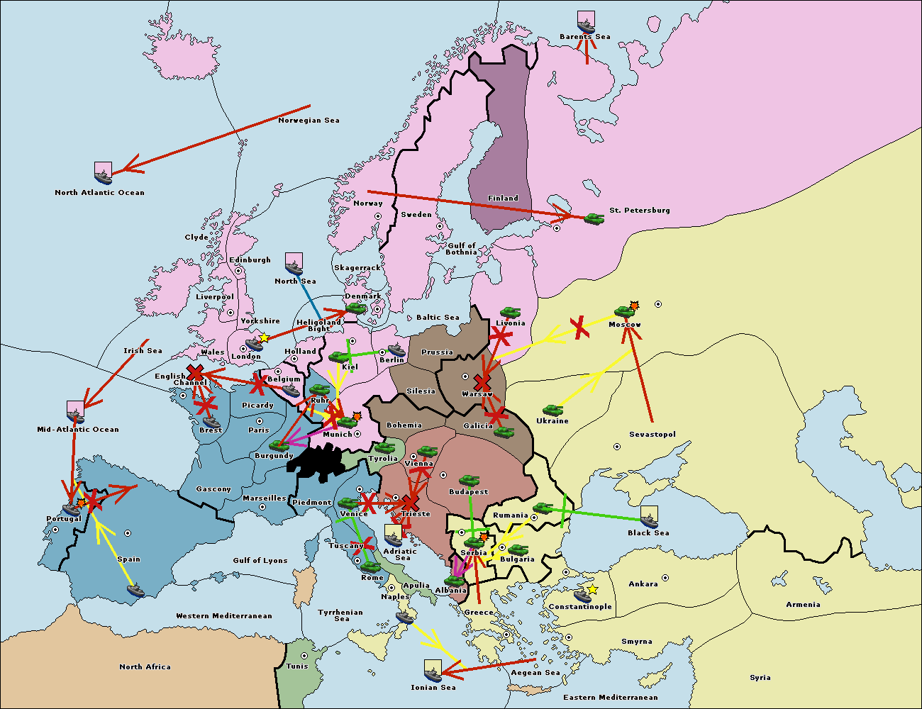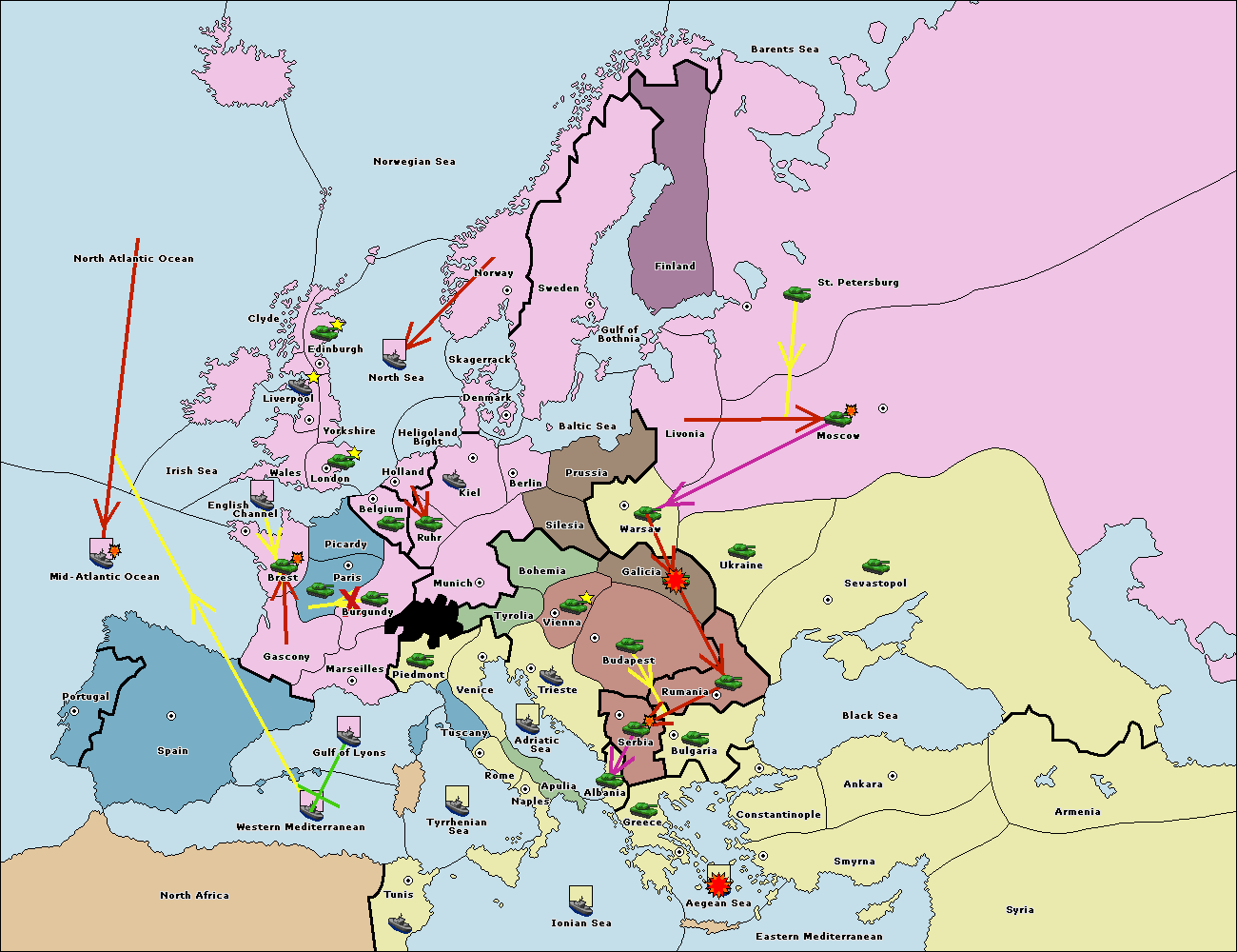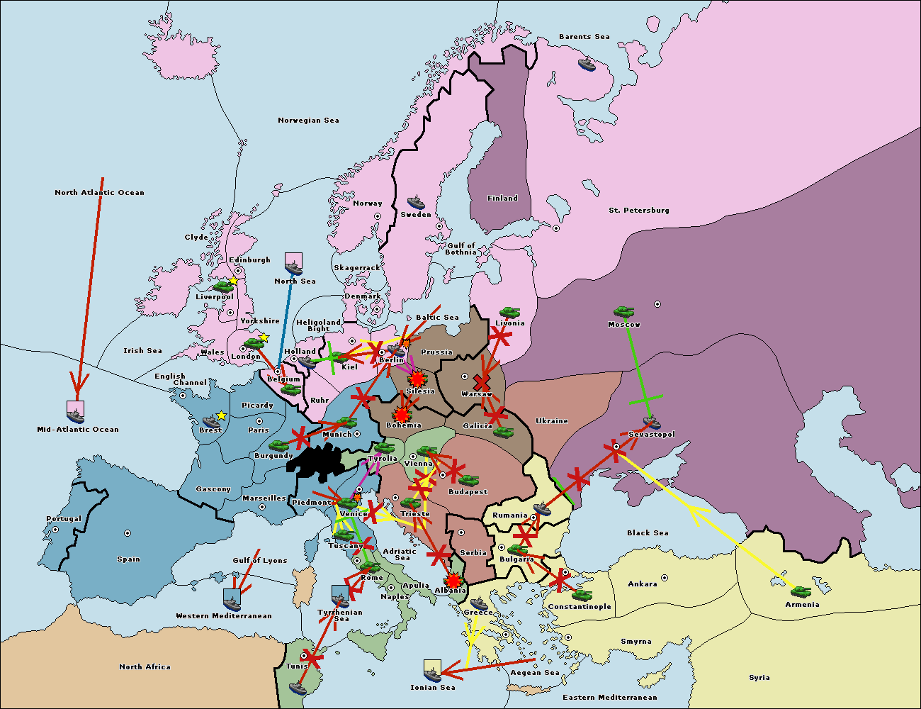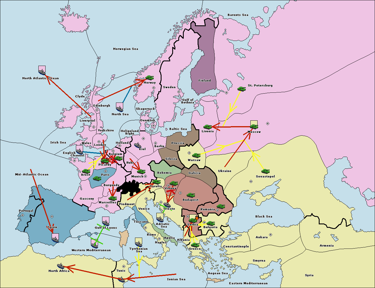 The fleet at Mid-Atlantic Ocean move to Western Mediterranean.