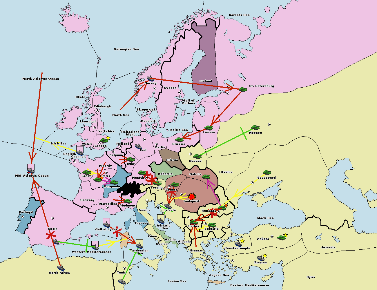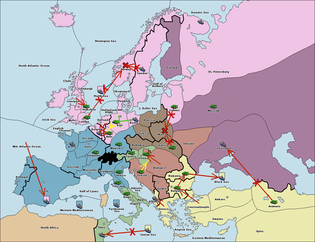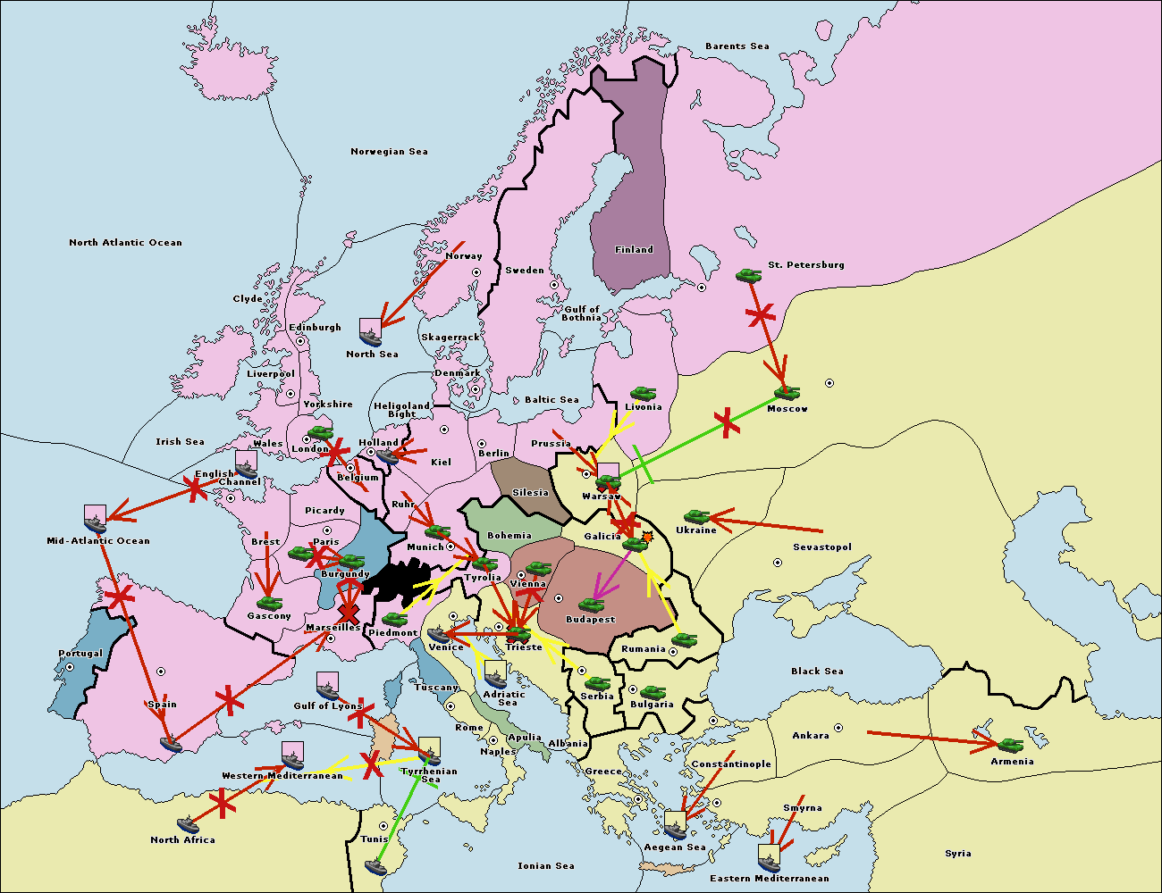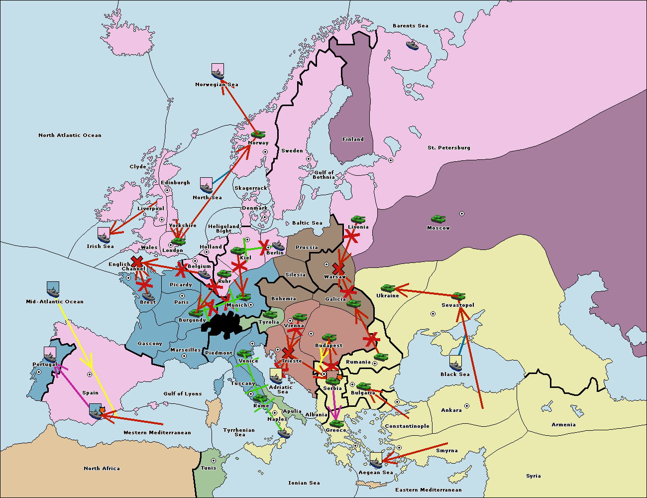 The fleet at Mid-Atlantic Ocean move to Western Mediterranean.