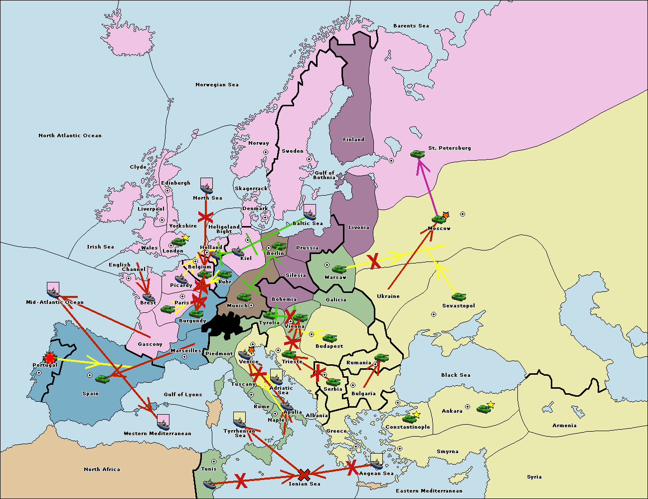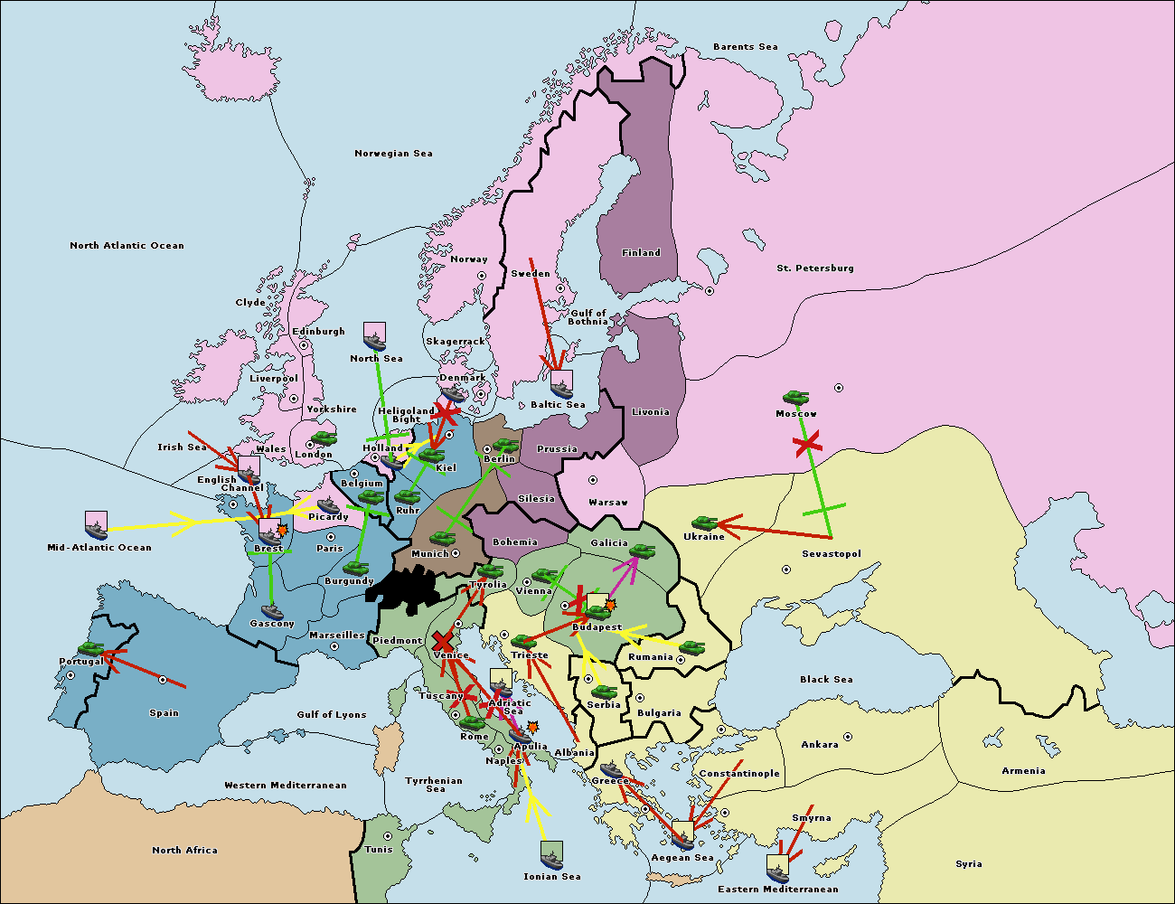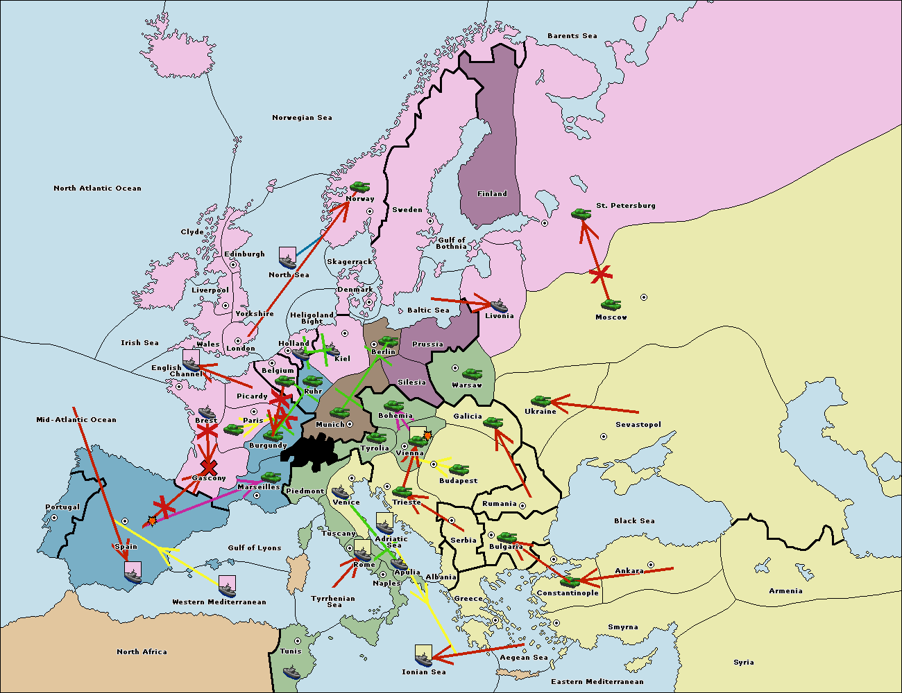 The fleet at Spain (South Coast) support move to Marseilles from Gulf of Lyons.