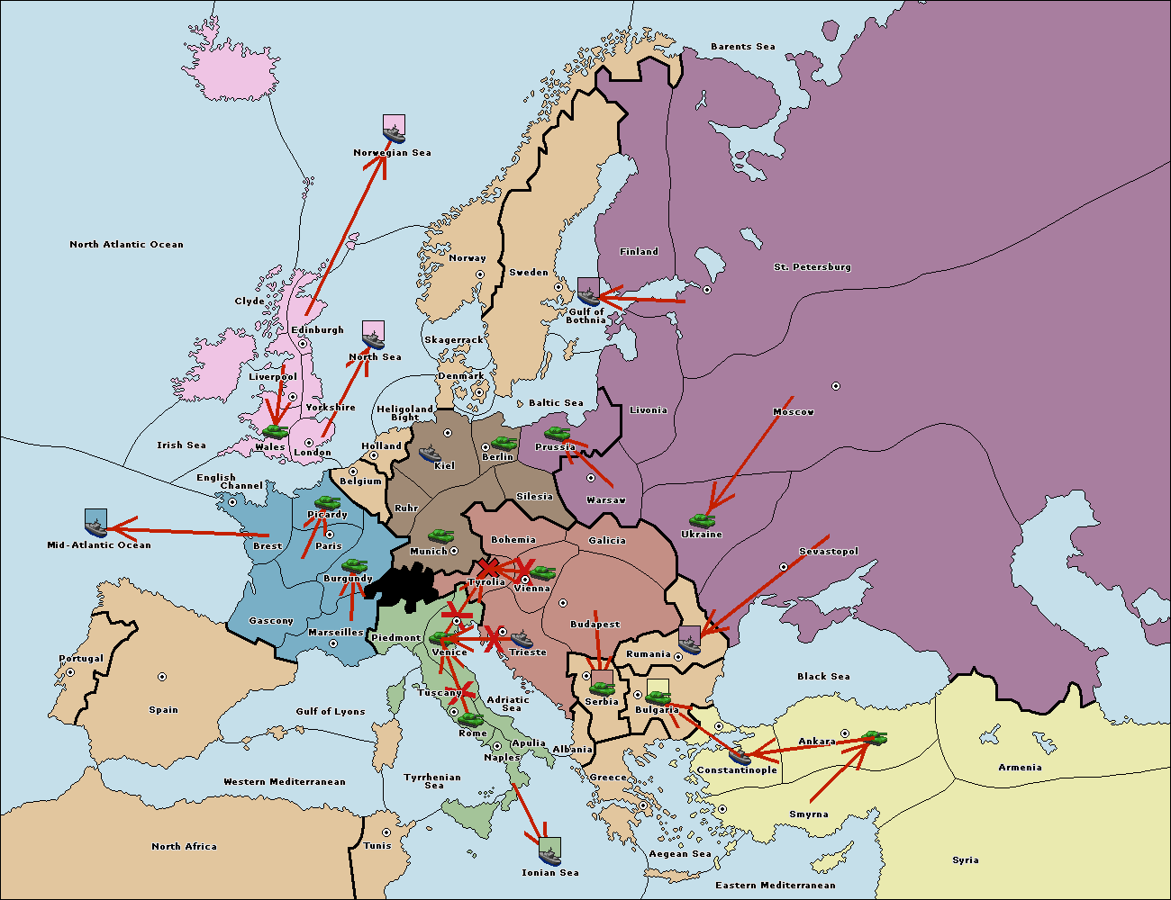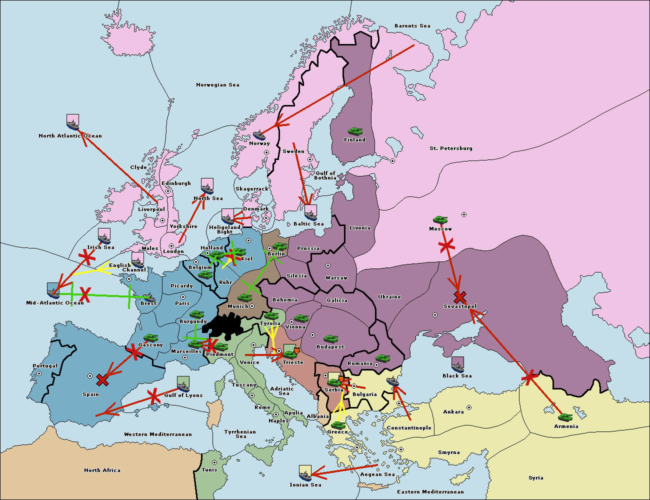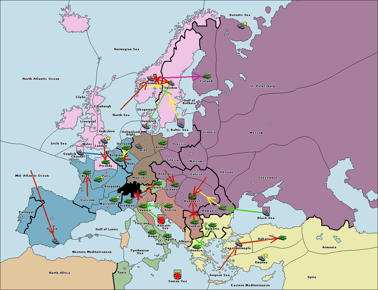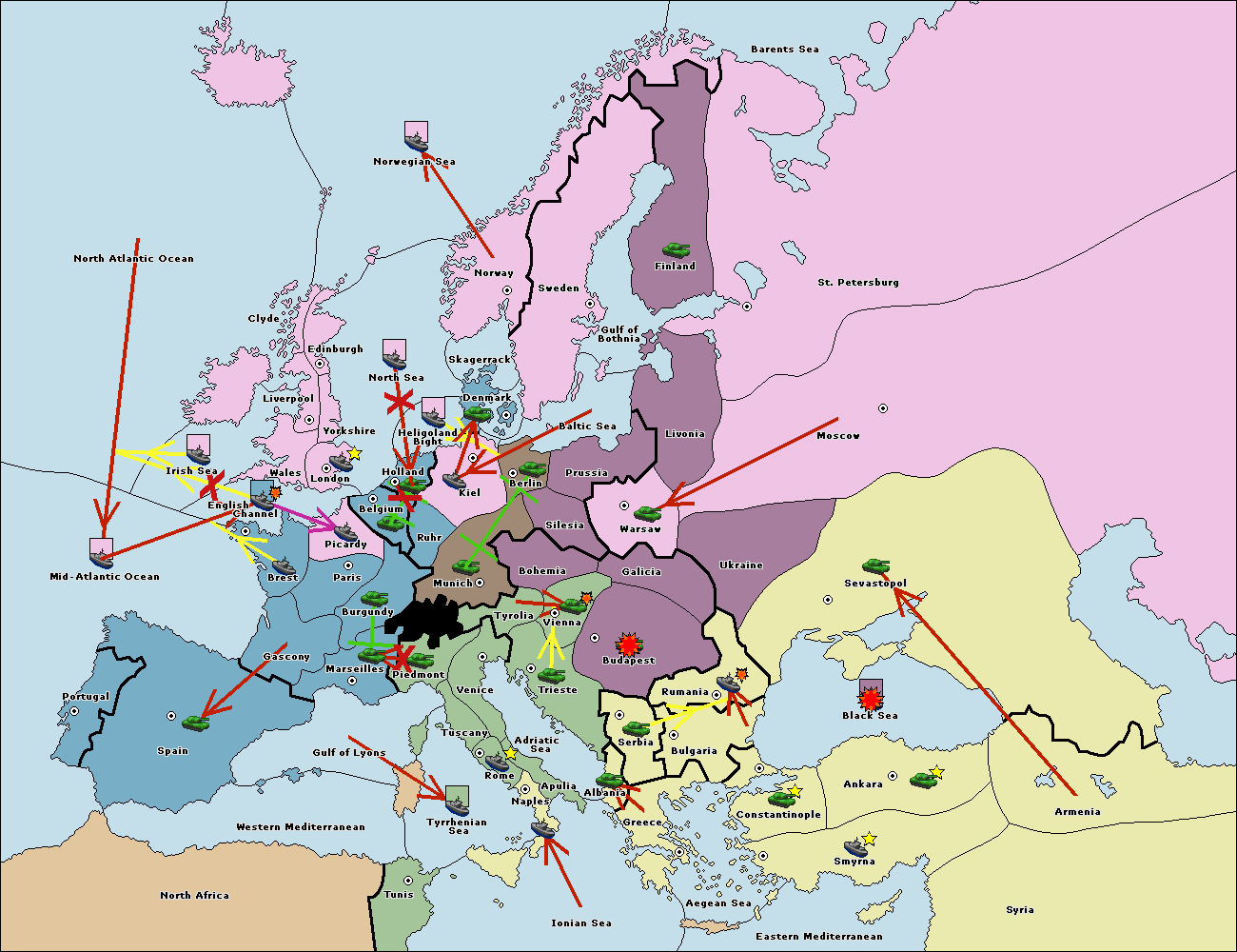 The fleet at Spain (South Coast) support move to Marseilles from Gulf of Lyons.