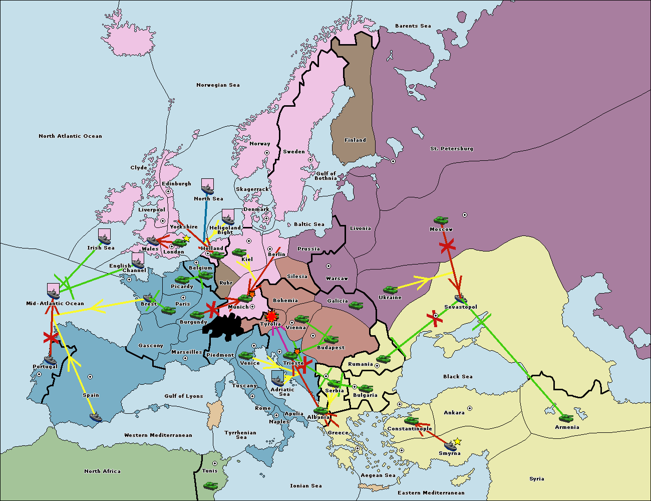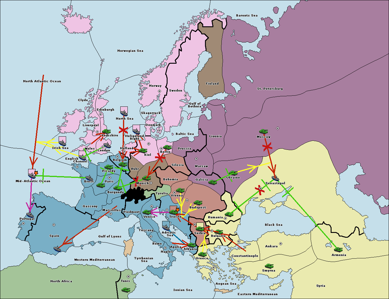 The fleet at Bulgaria (South Coast) move to Greece.