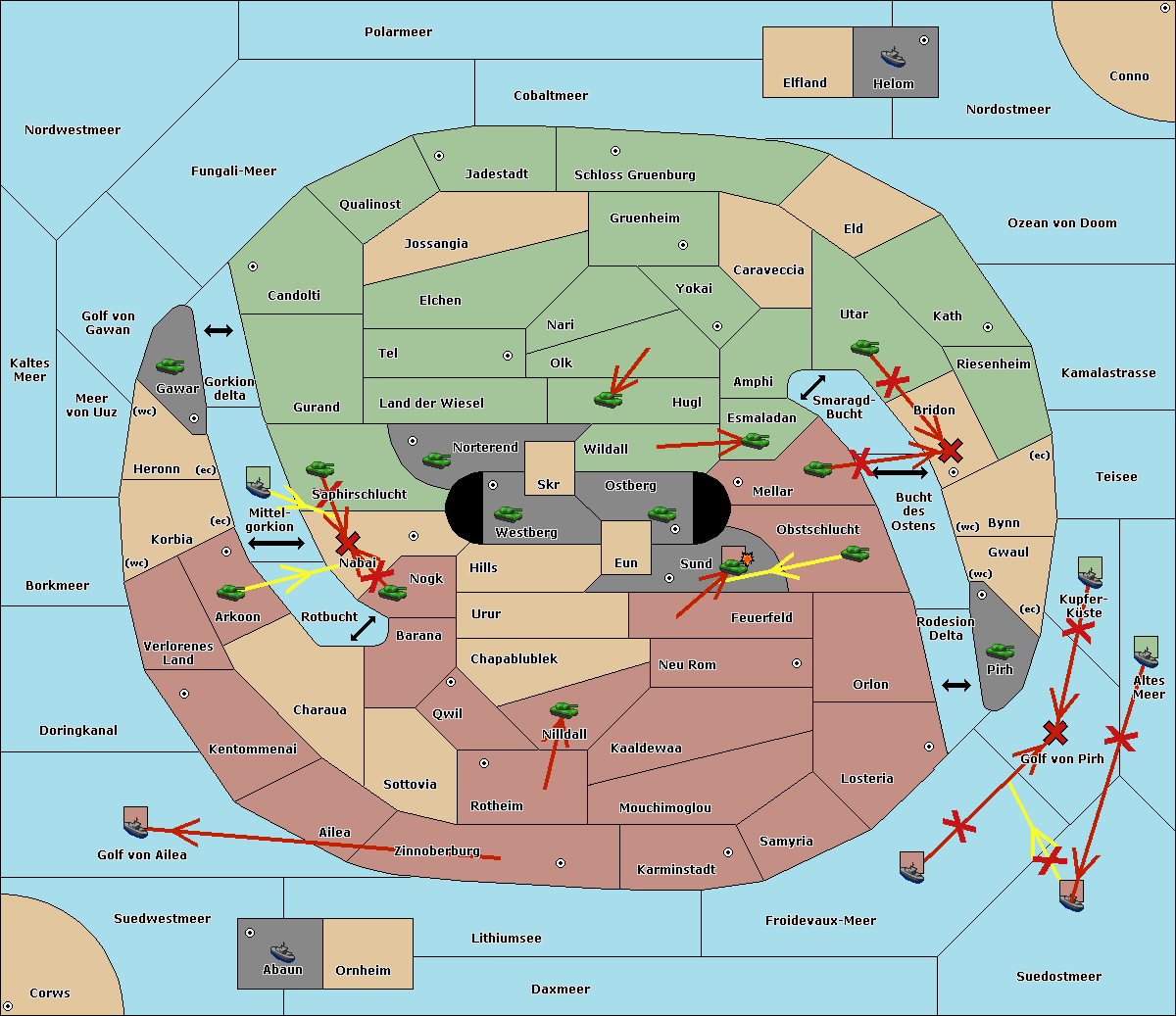 The fleet at Suedostmeer support move to Golf von Pirh from Froidevaux-Meer.