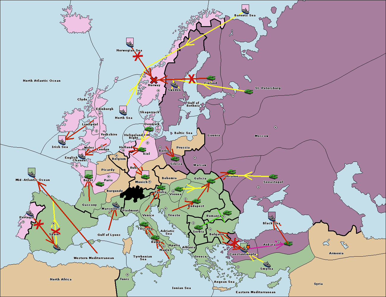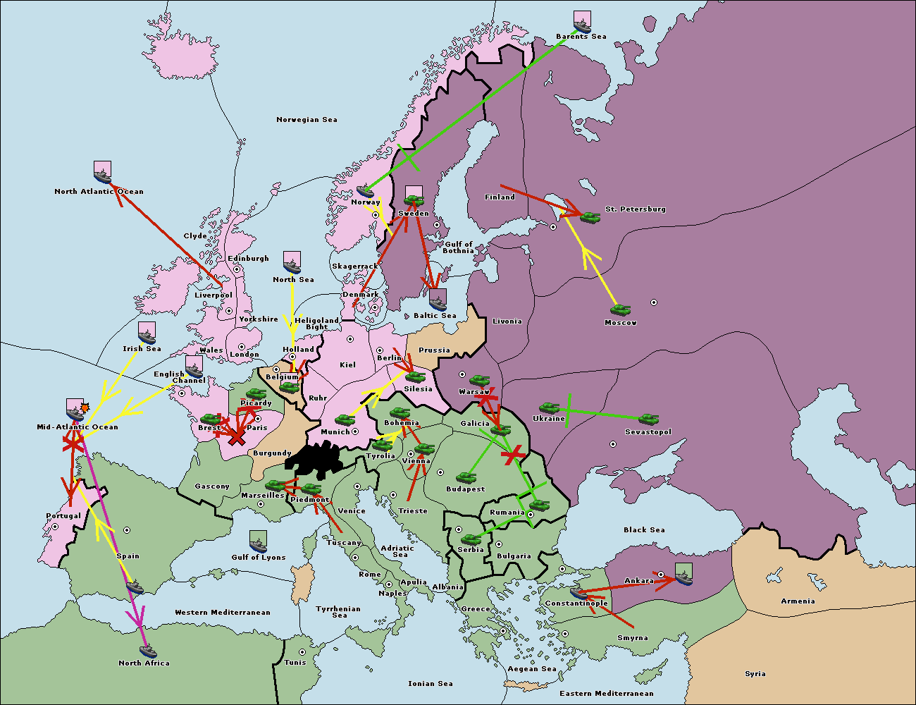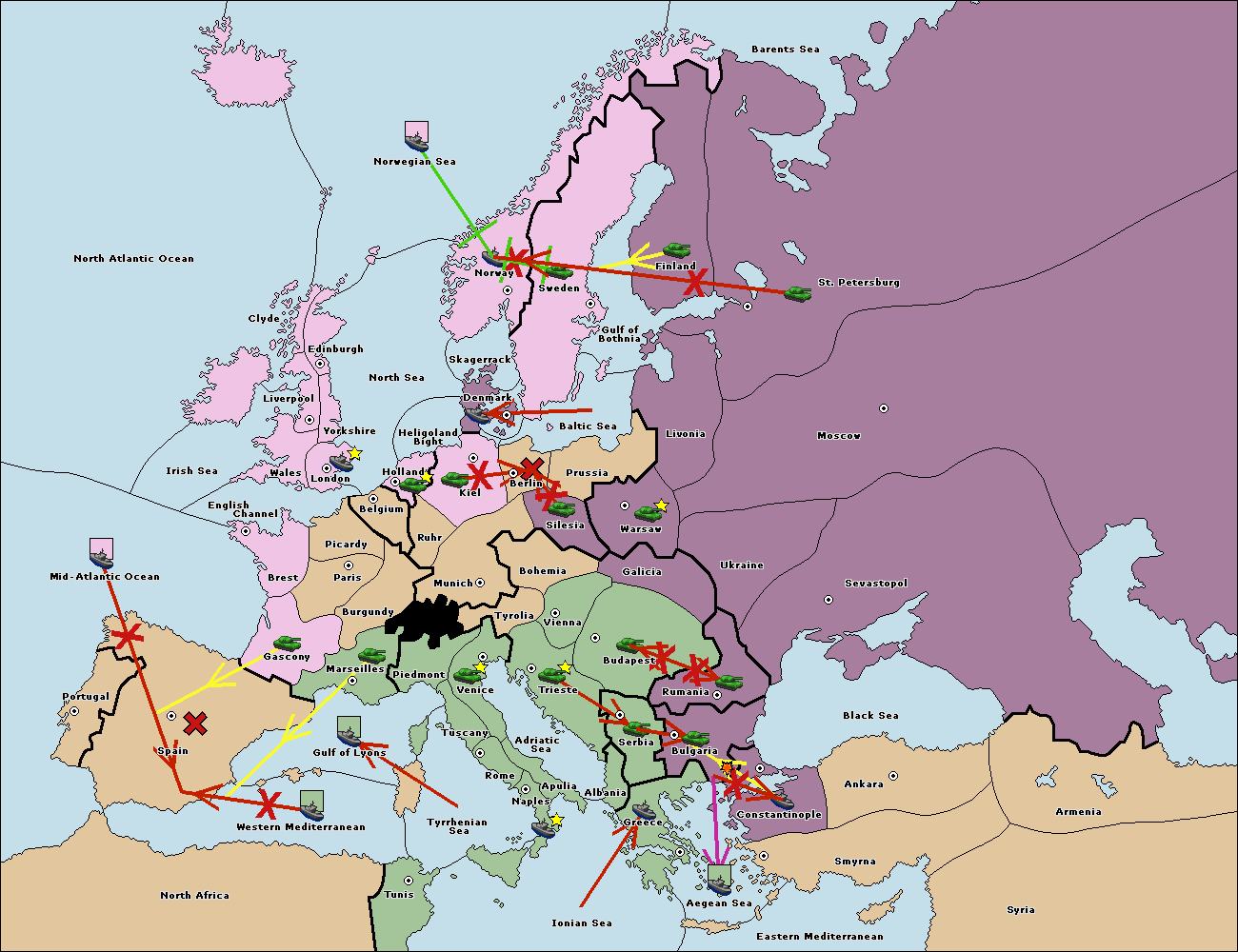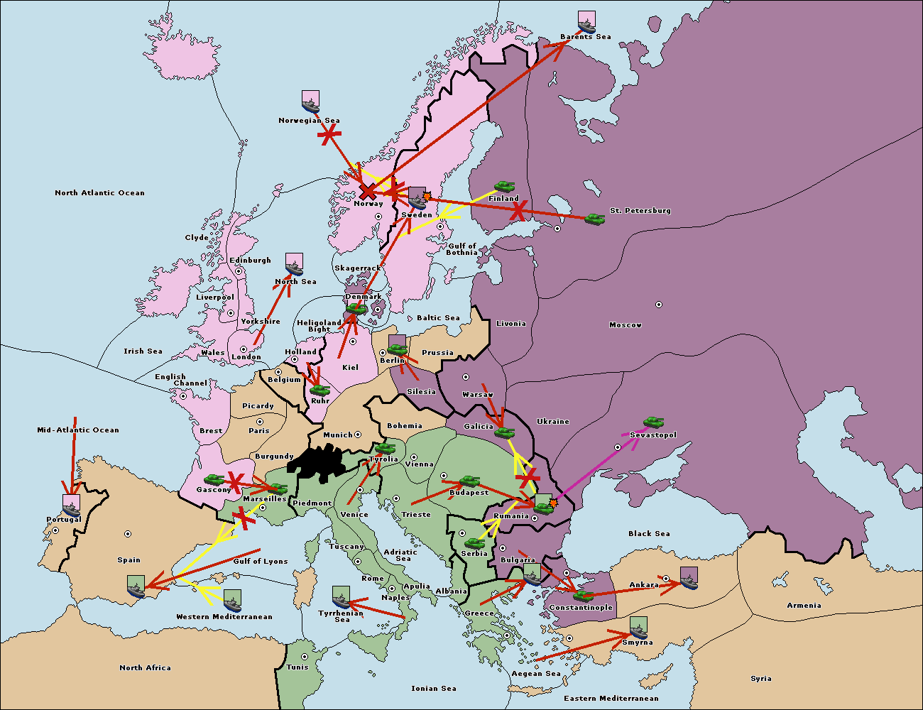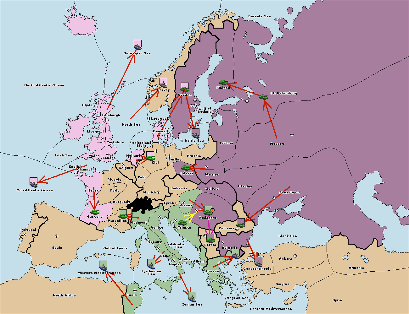 The fleet at Bulgaria (South Coast) support move to Constantinople from Smyrna.