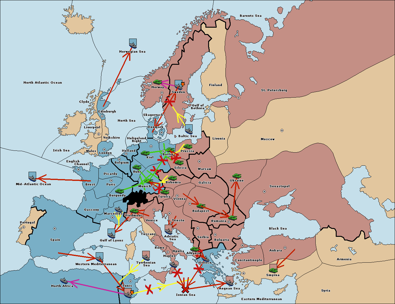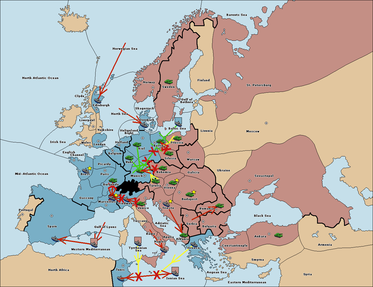 The fleet at Mid-Atlantic Ocean move to Western Mediterranean.