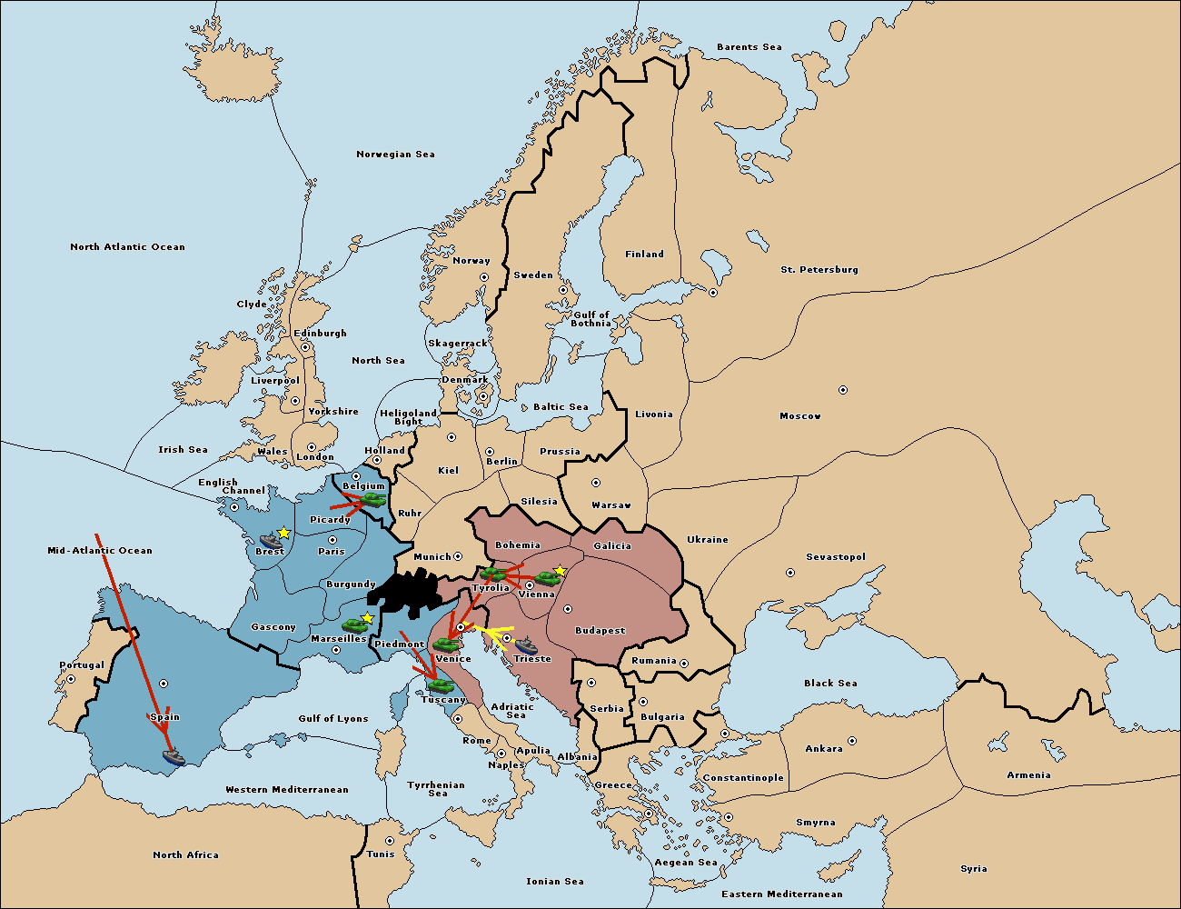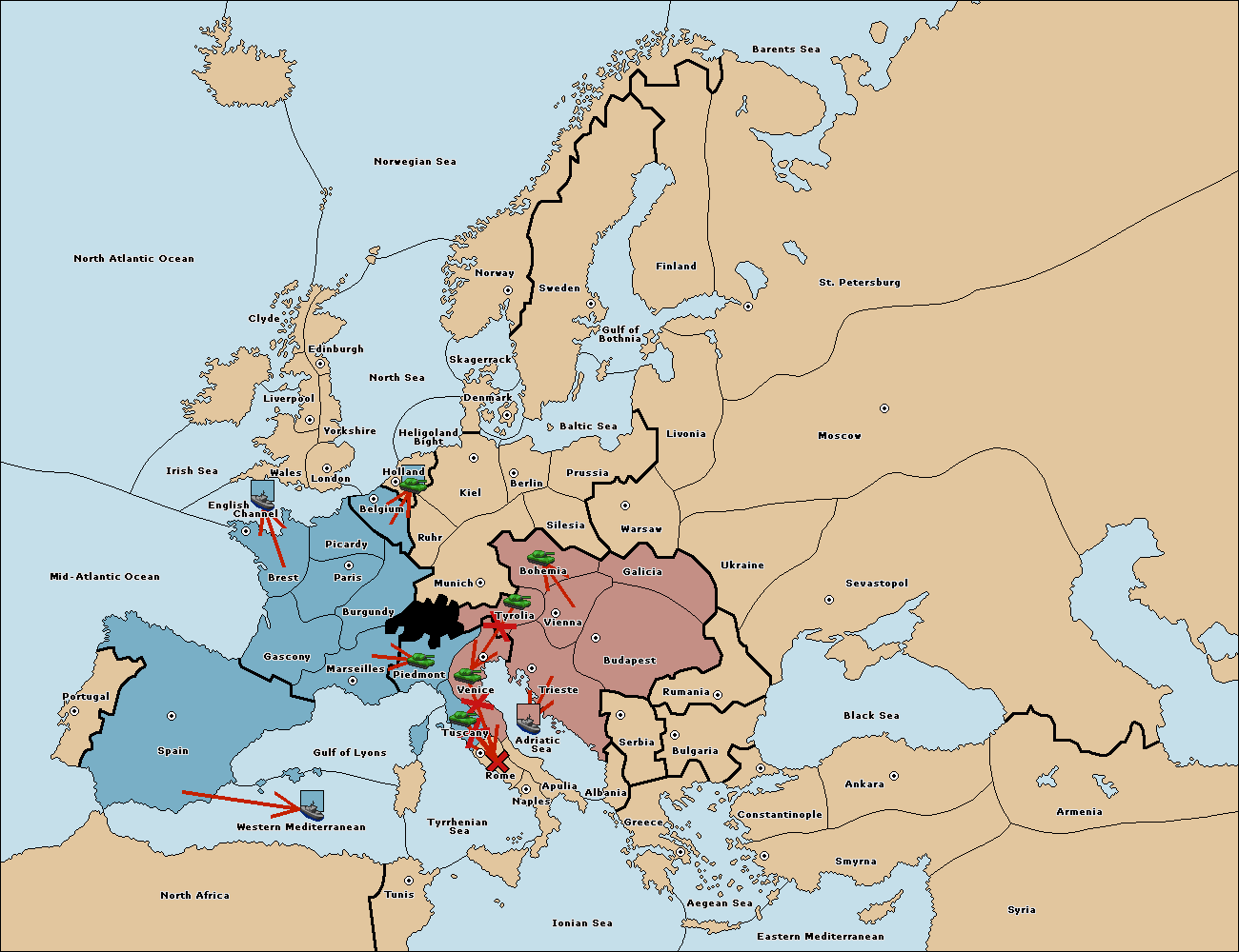 The army at Tyrolia move to Vienna.