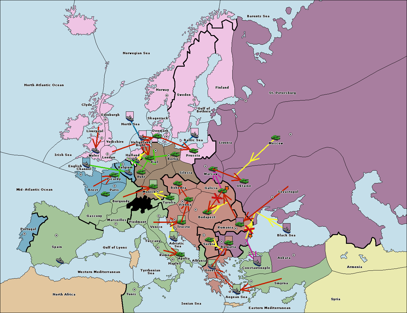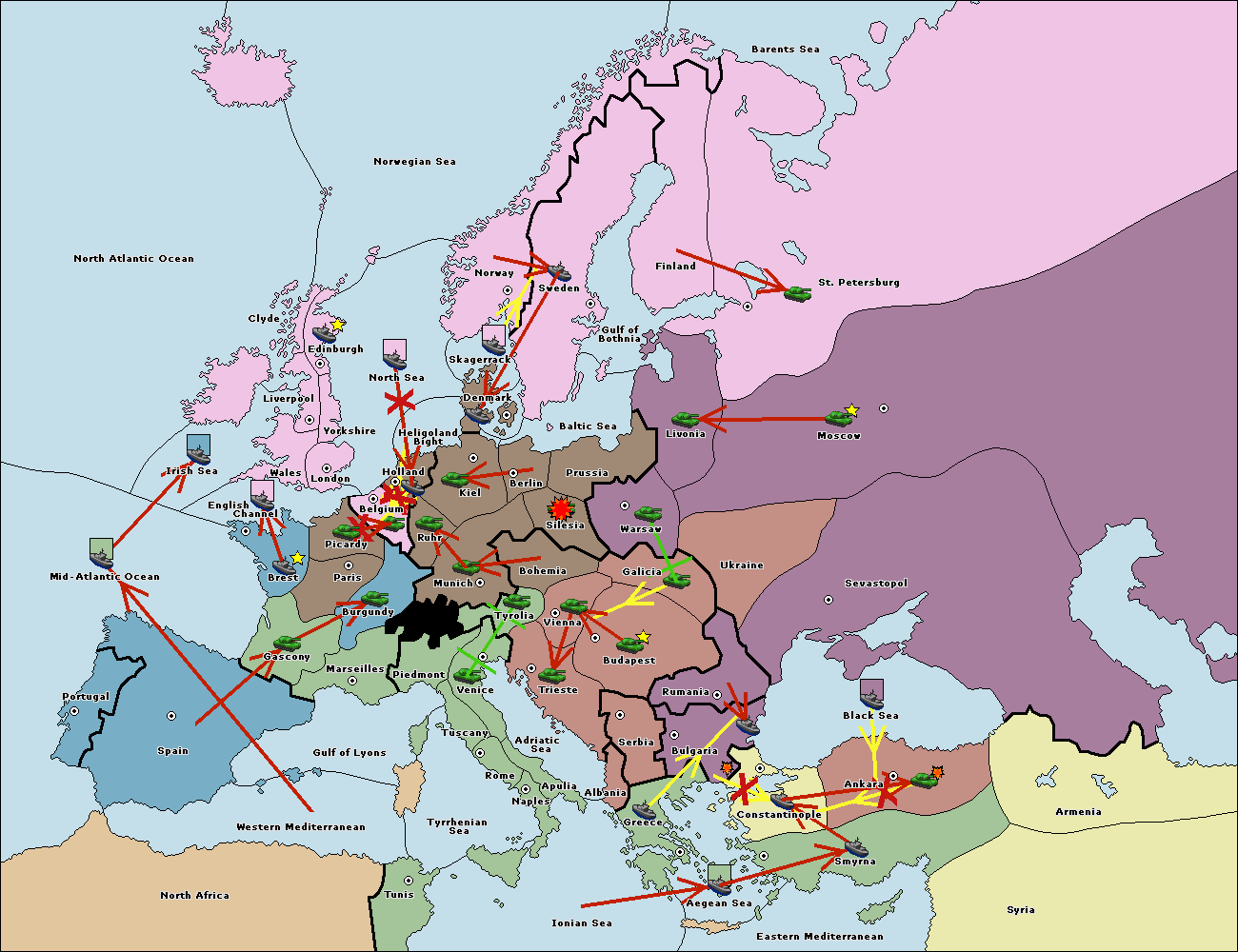 The fleet at Bulgaria (South Coast) support move to Constantinople from Smyrna.