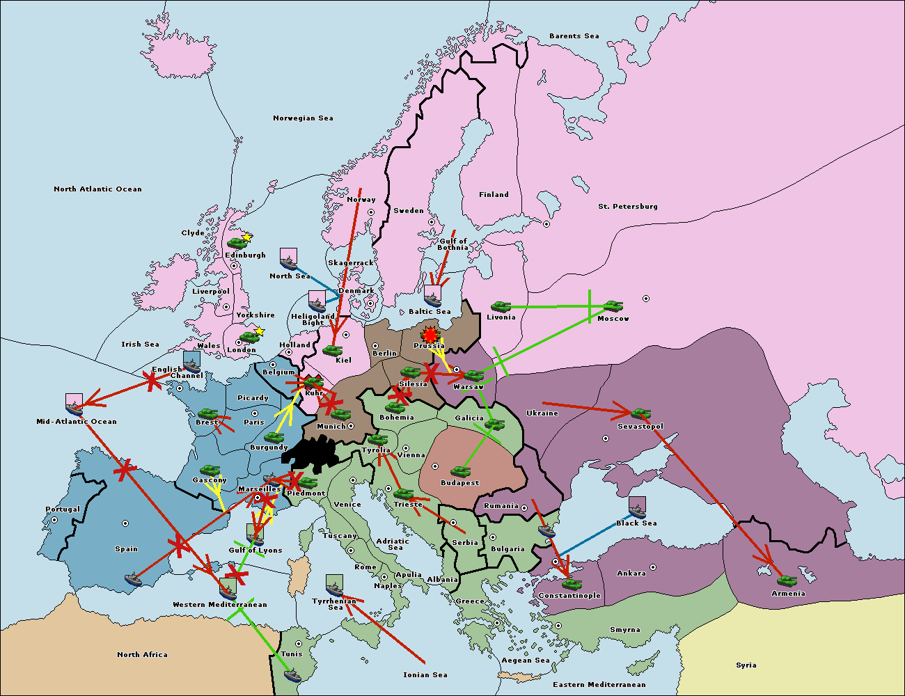 The fleet at Bulgaria (North Coast) move to Constantinople.