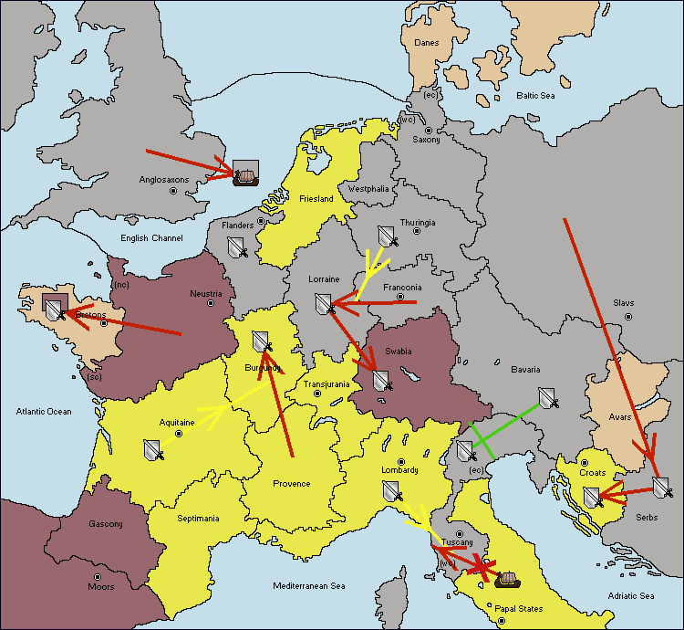 The fleet at Tuscany (West Coast) support hold to Lombardy.