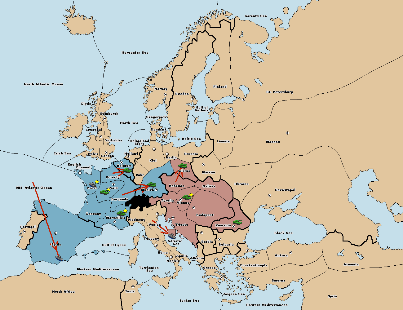 The fleet at Spain (South Coast) move to Western Mediterranean.