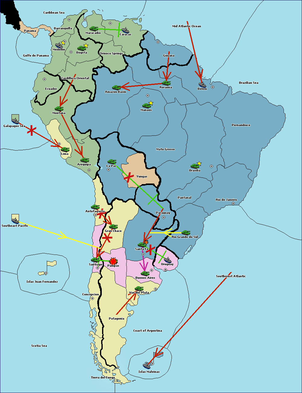 The fleet at Southeast Pacific support move to Santiago from Gran Chaco.
