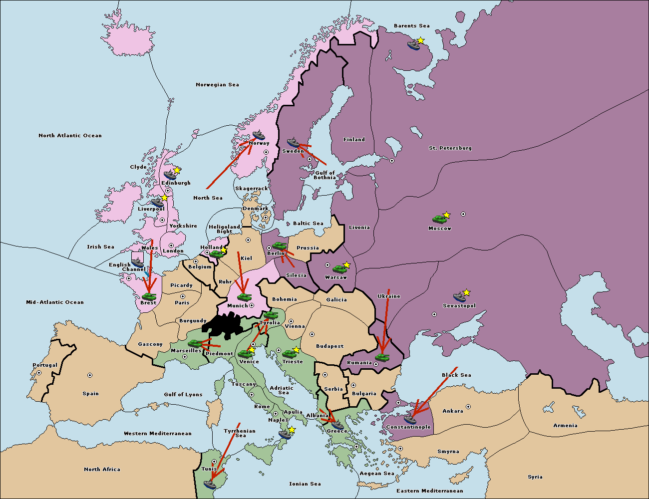 The fleet at St. Petersburg (North Coast) move to Barents Sea.